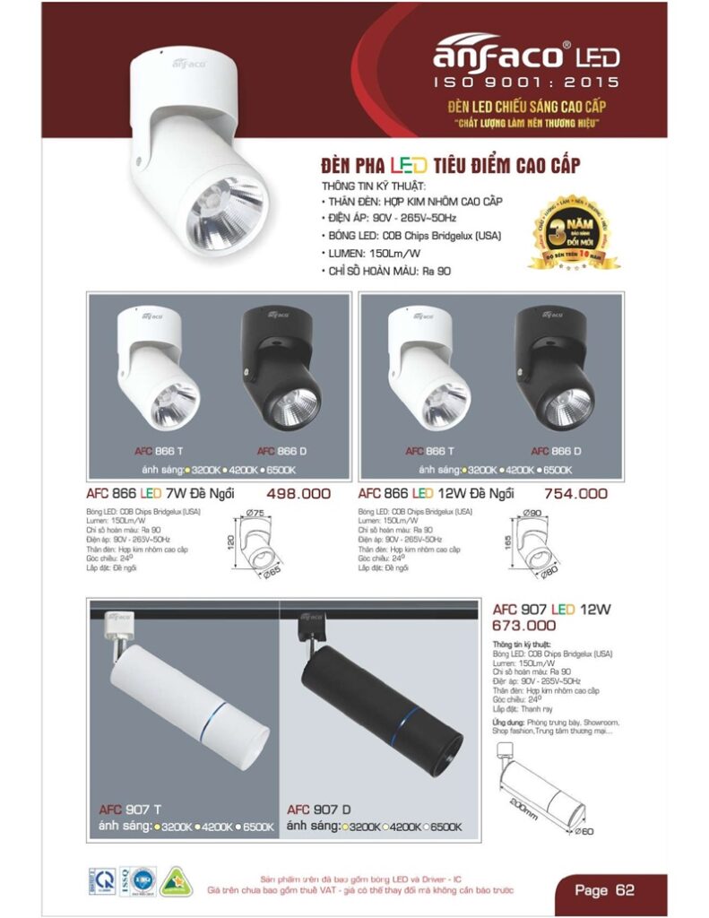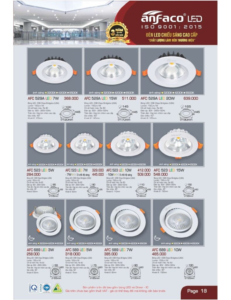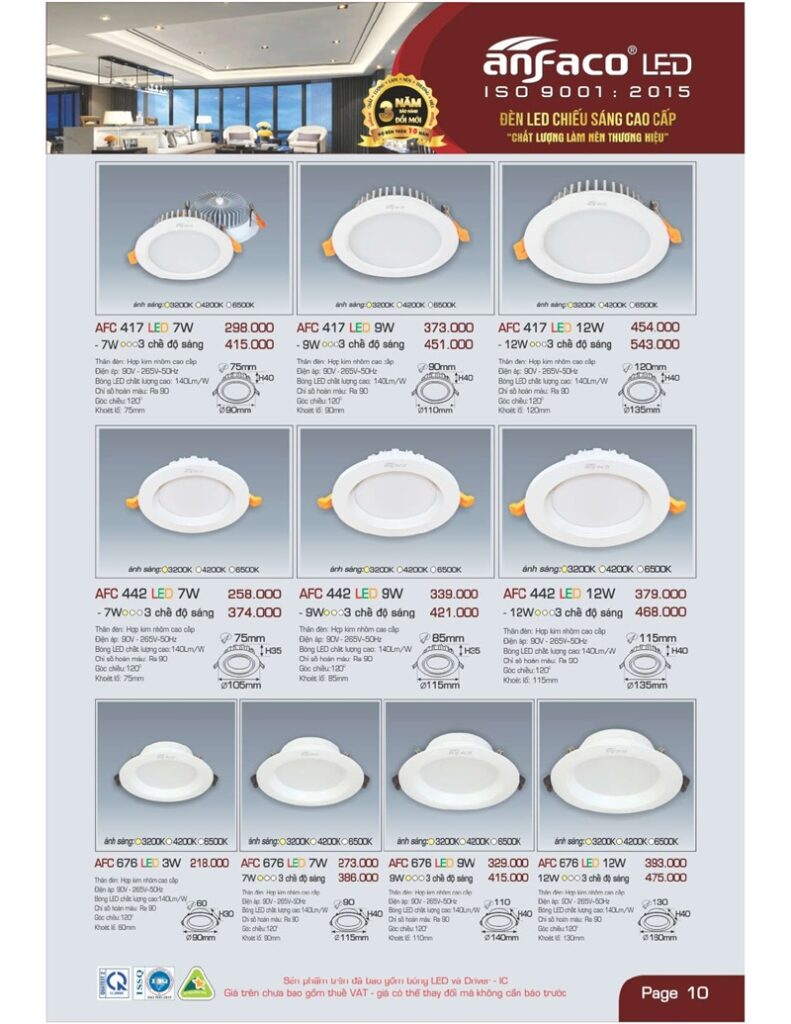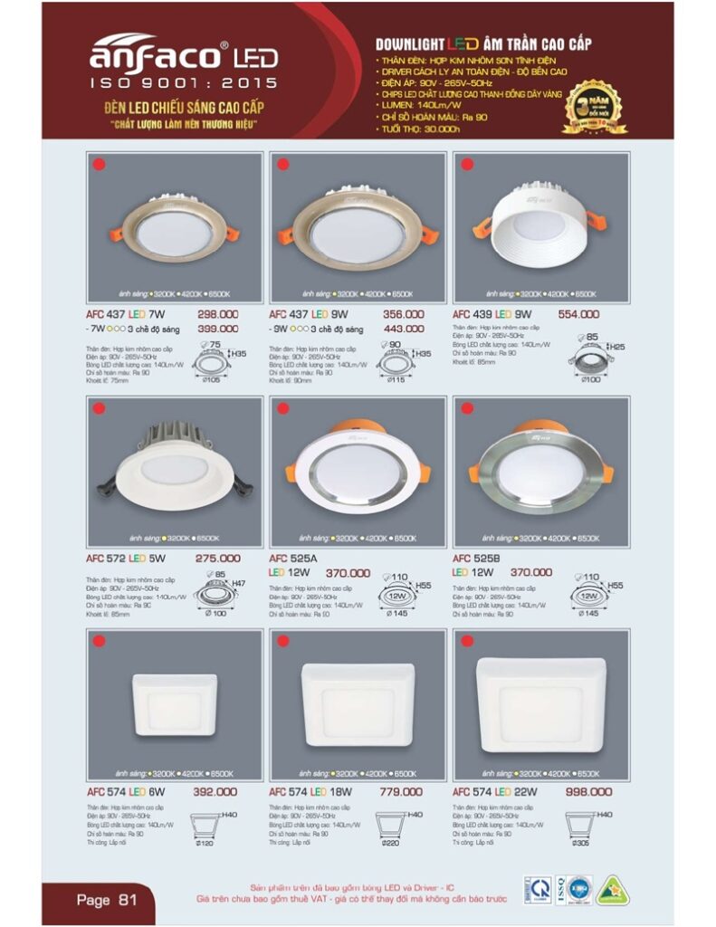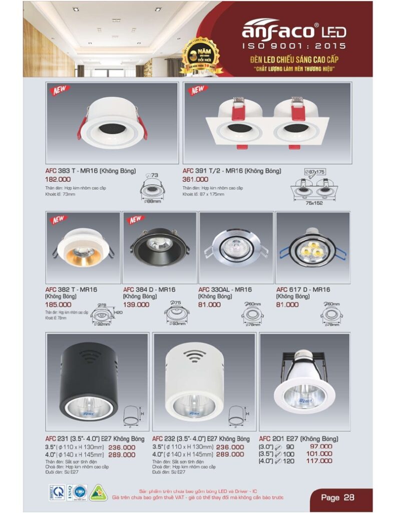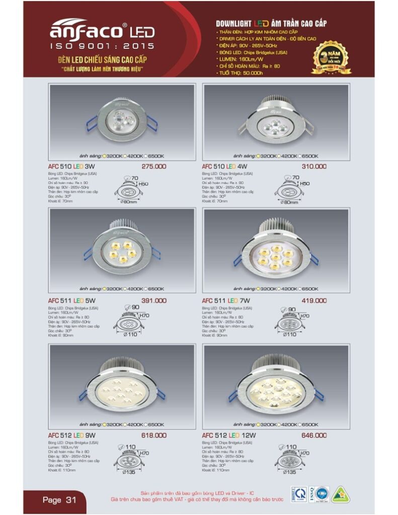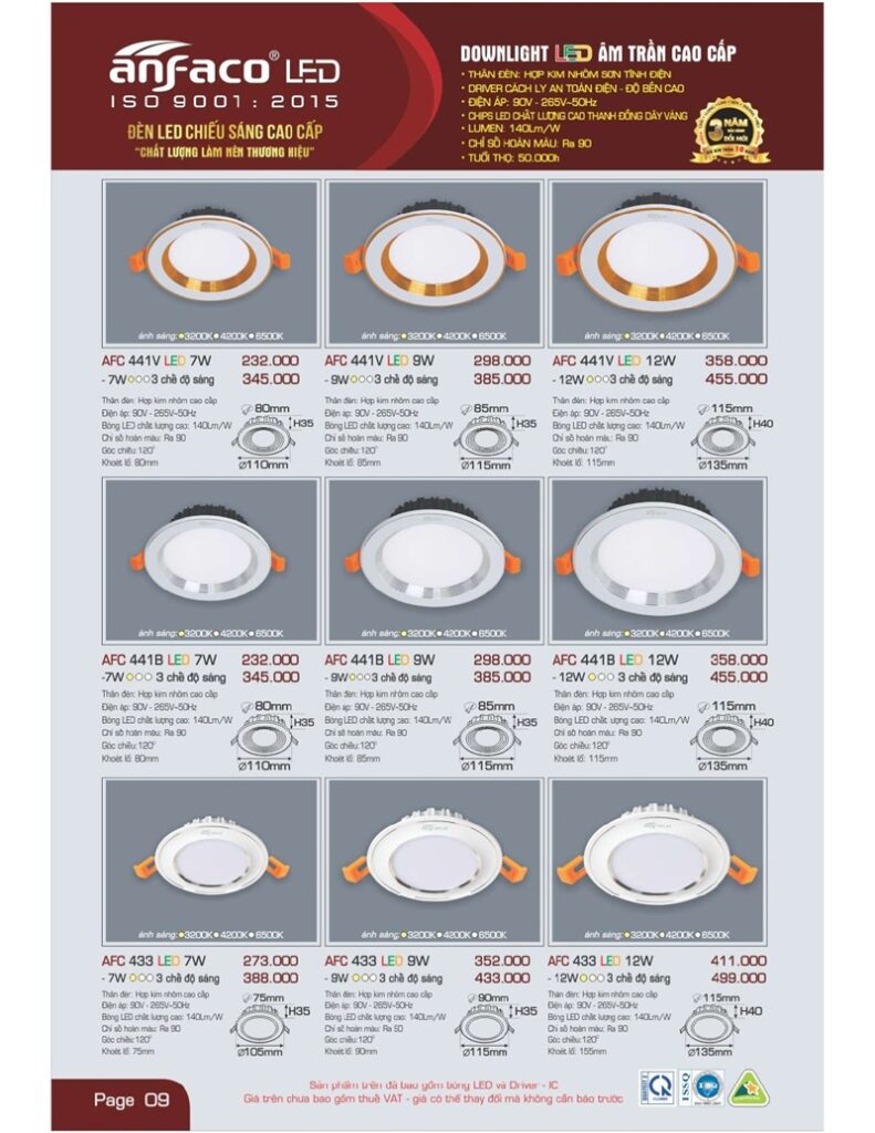 Bảng giá đèn led Anfaco hình ảnh và thông số kỹ thuật: