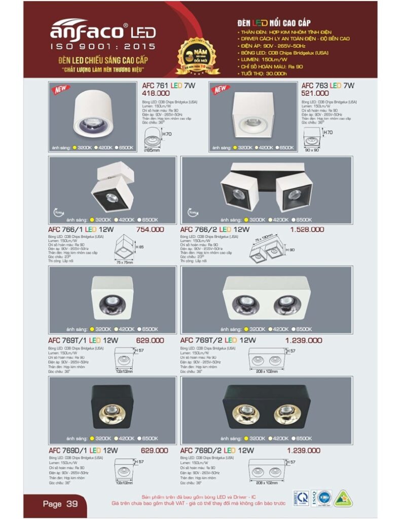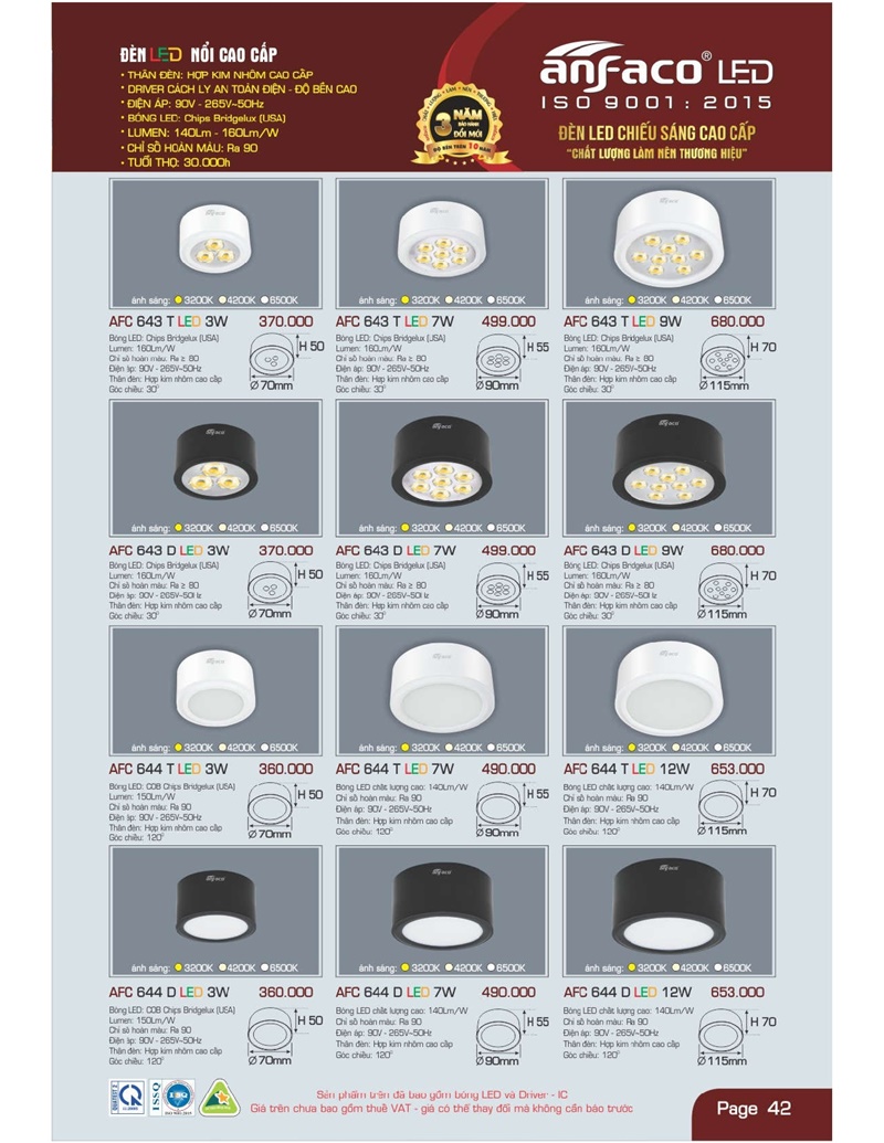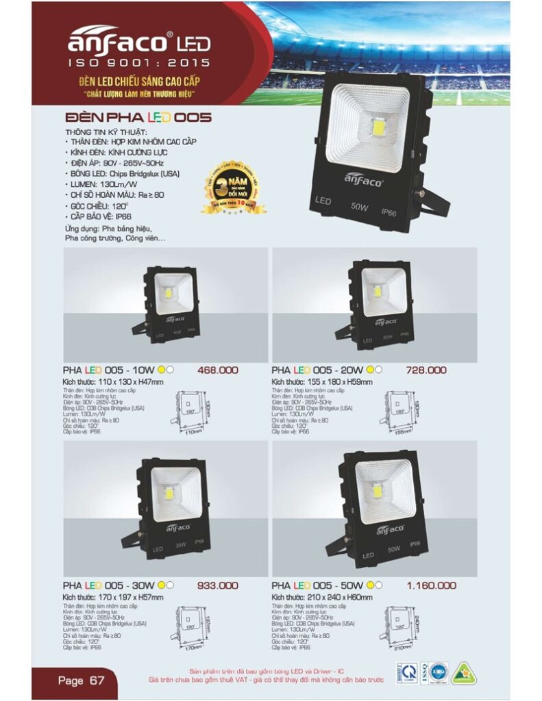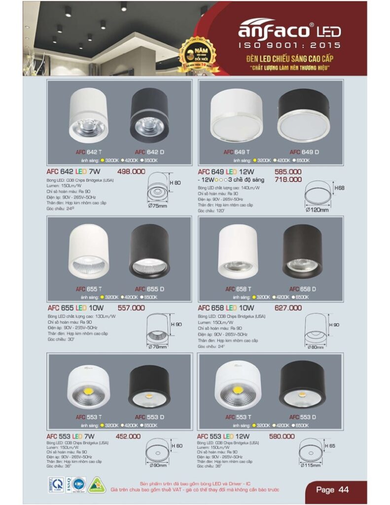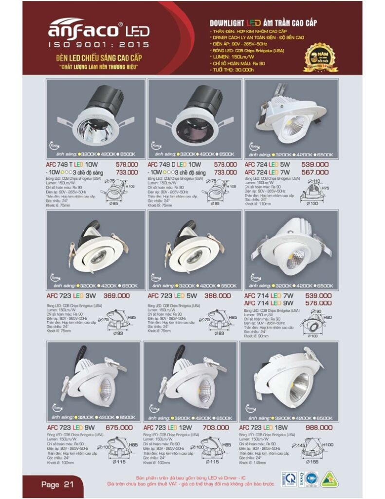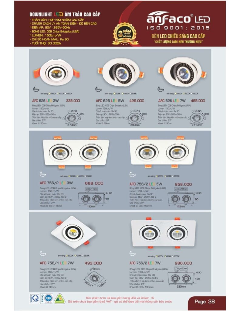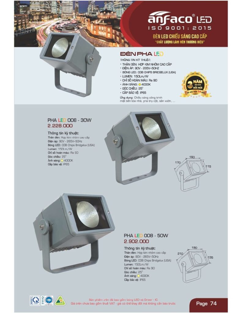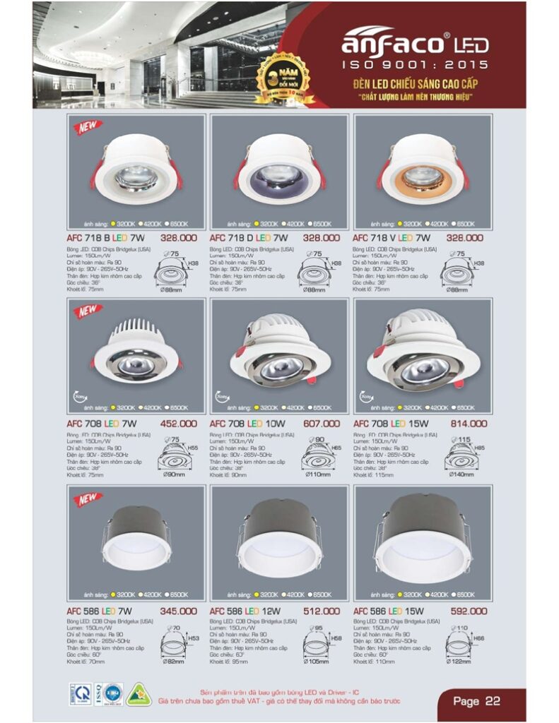Bảng giá đèn led Anfaco hình ảnh và thông số kỹ thuật: