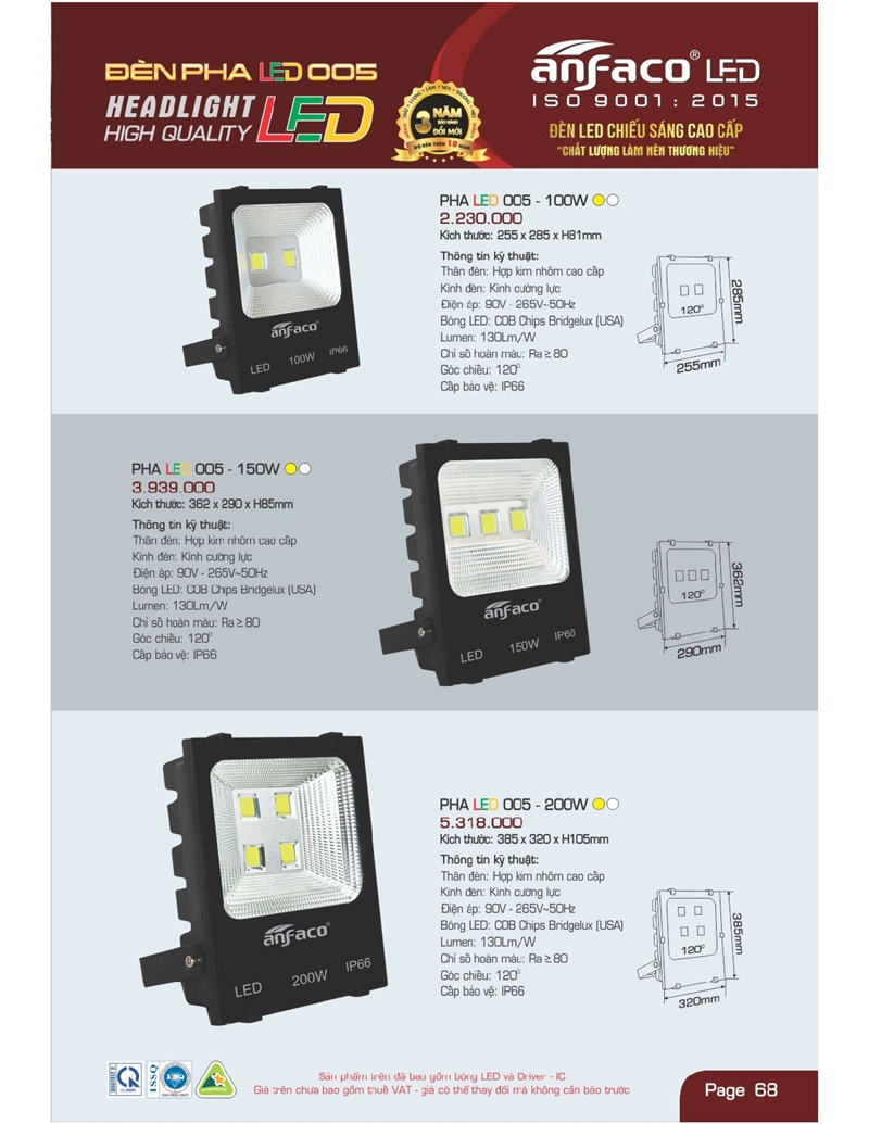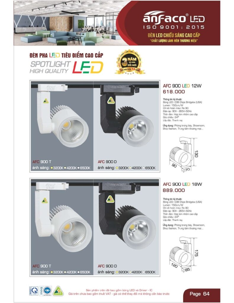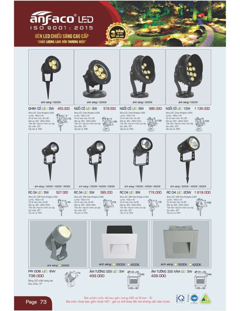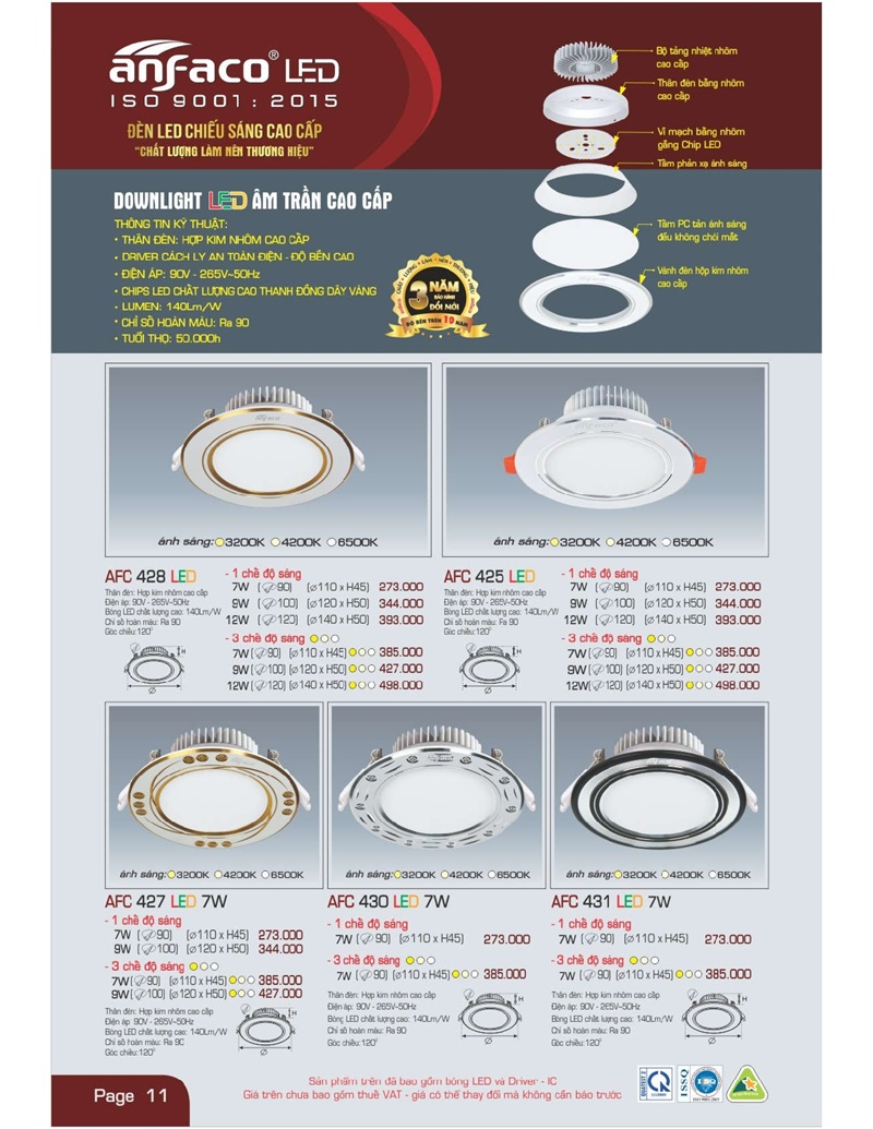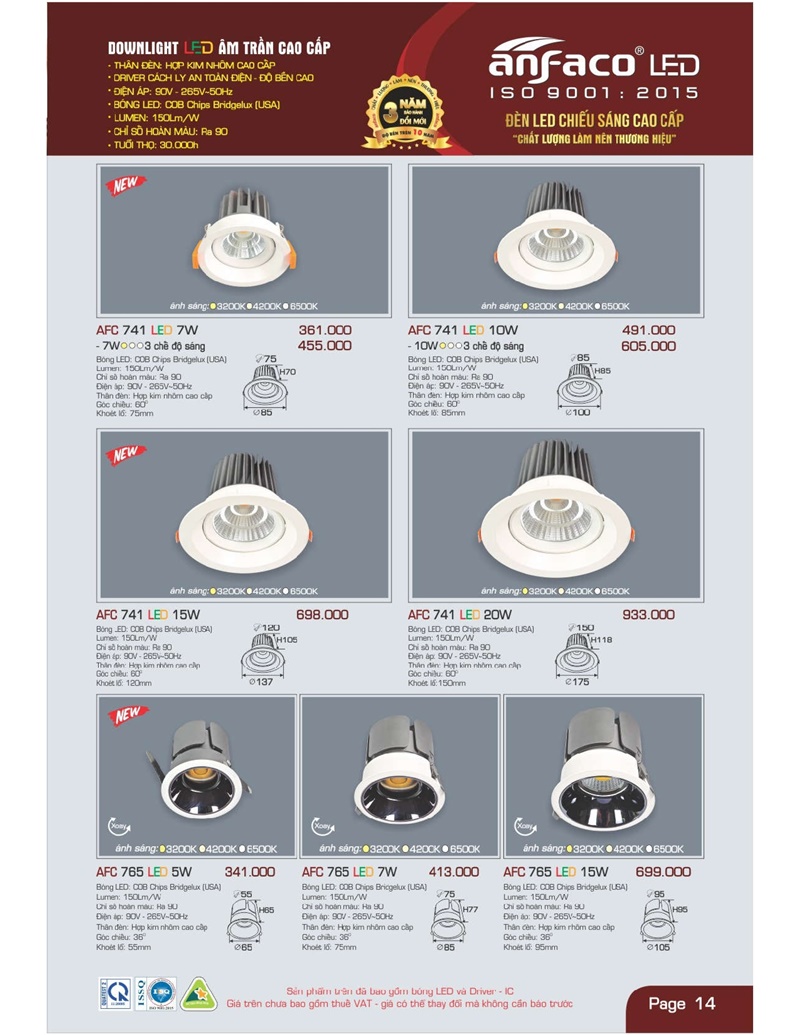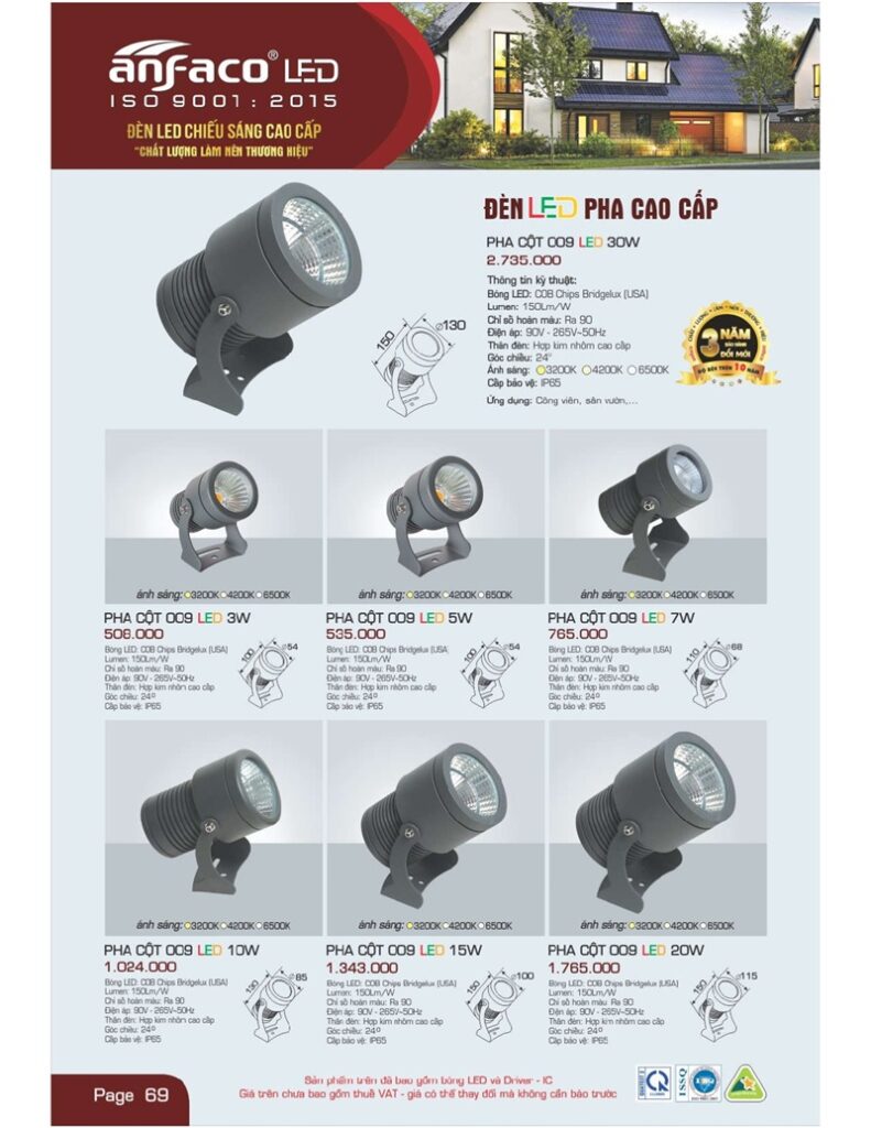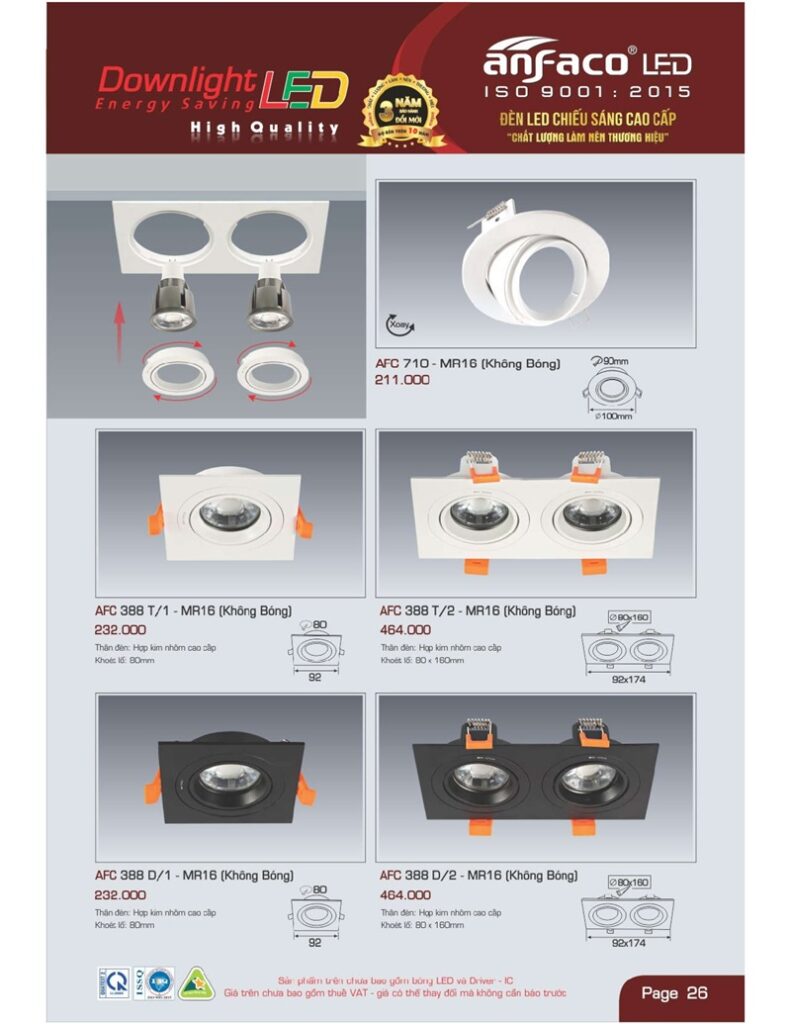 Bảng giá đèn led Anfaco hình ảnh và thông số kỹ thuật:
