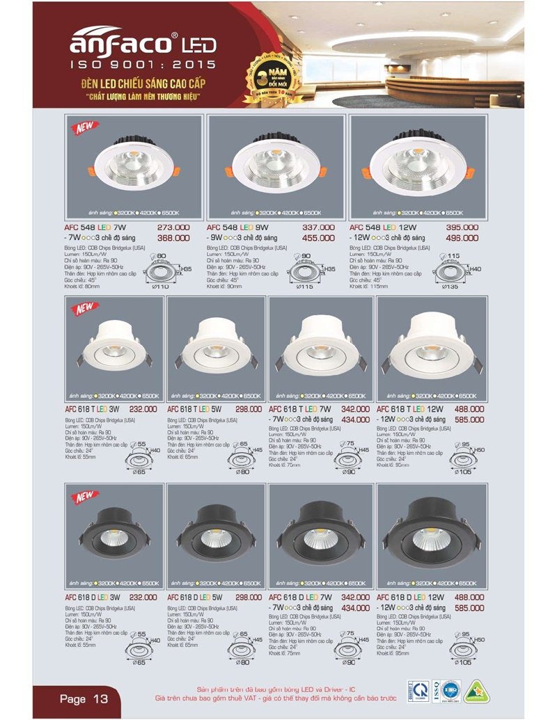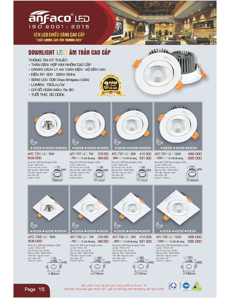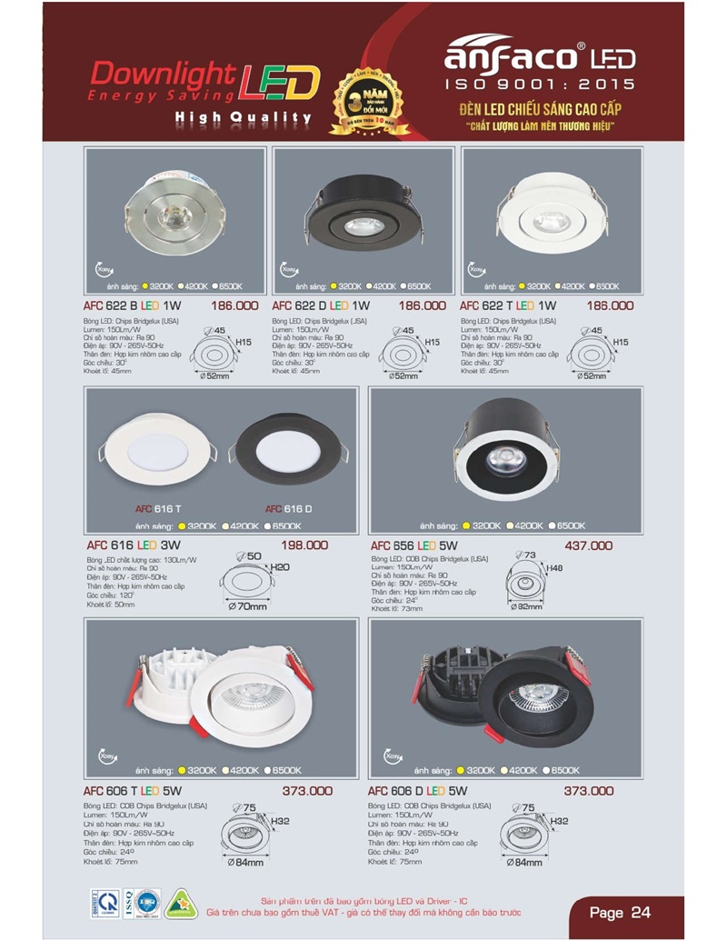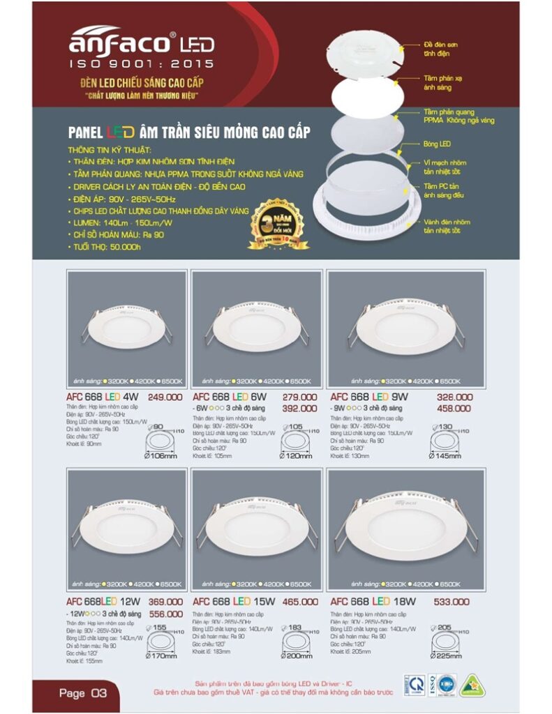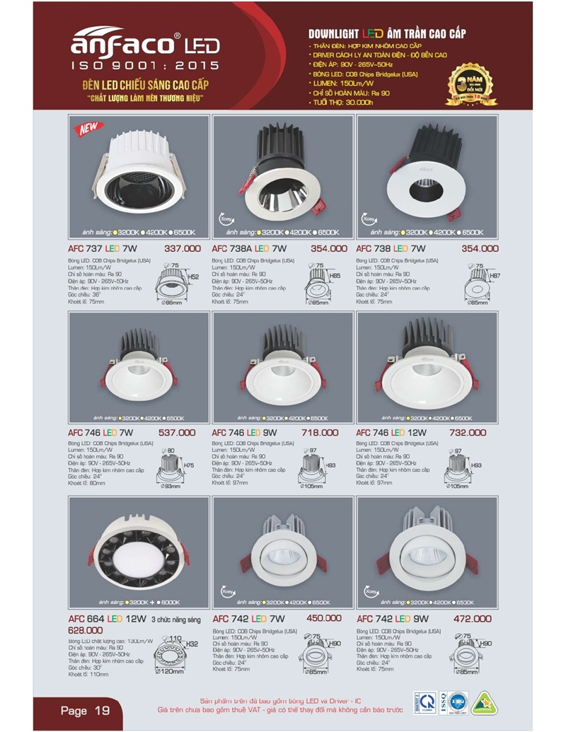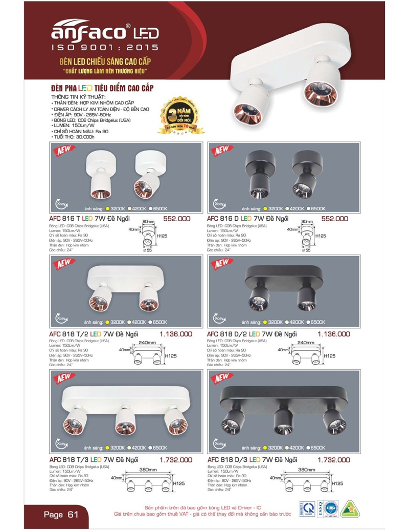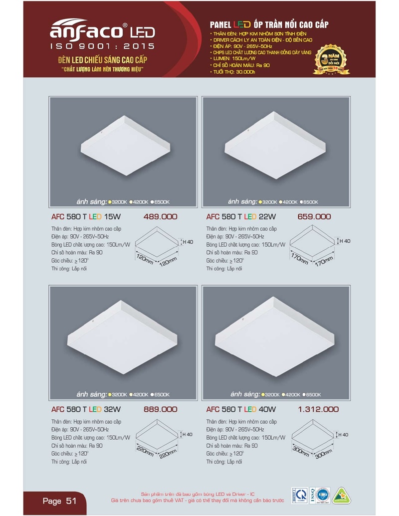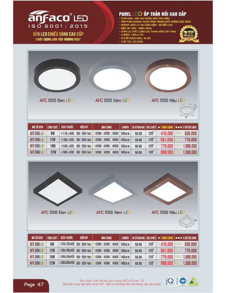 Bảng giá đèn led Anfaco hình ảnh và thông số kỹ thuật: