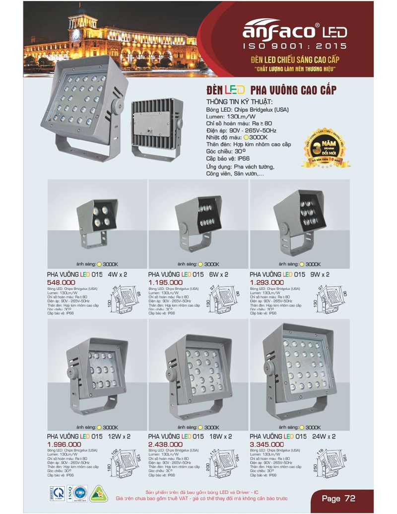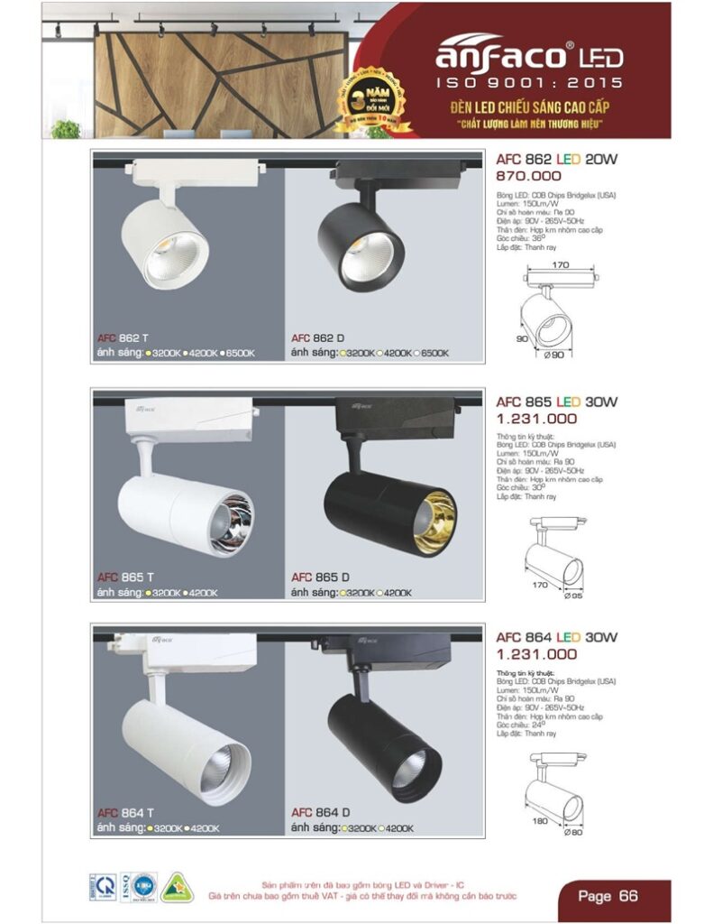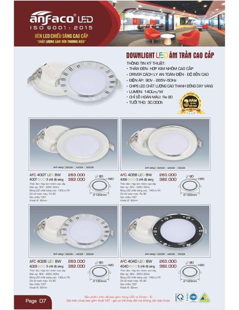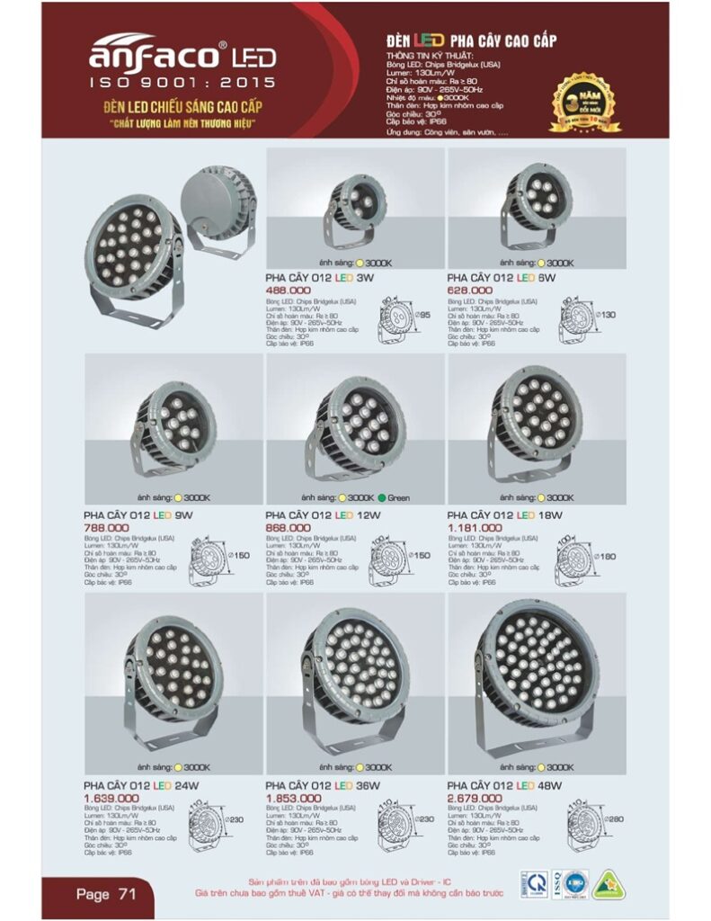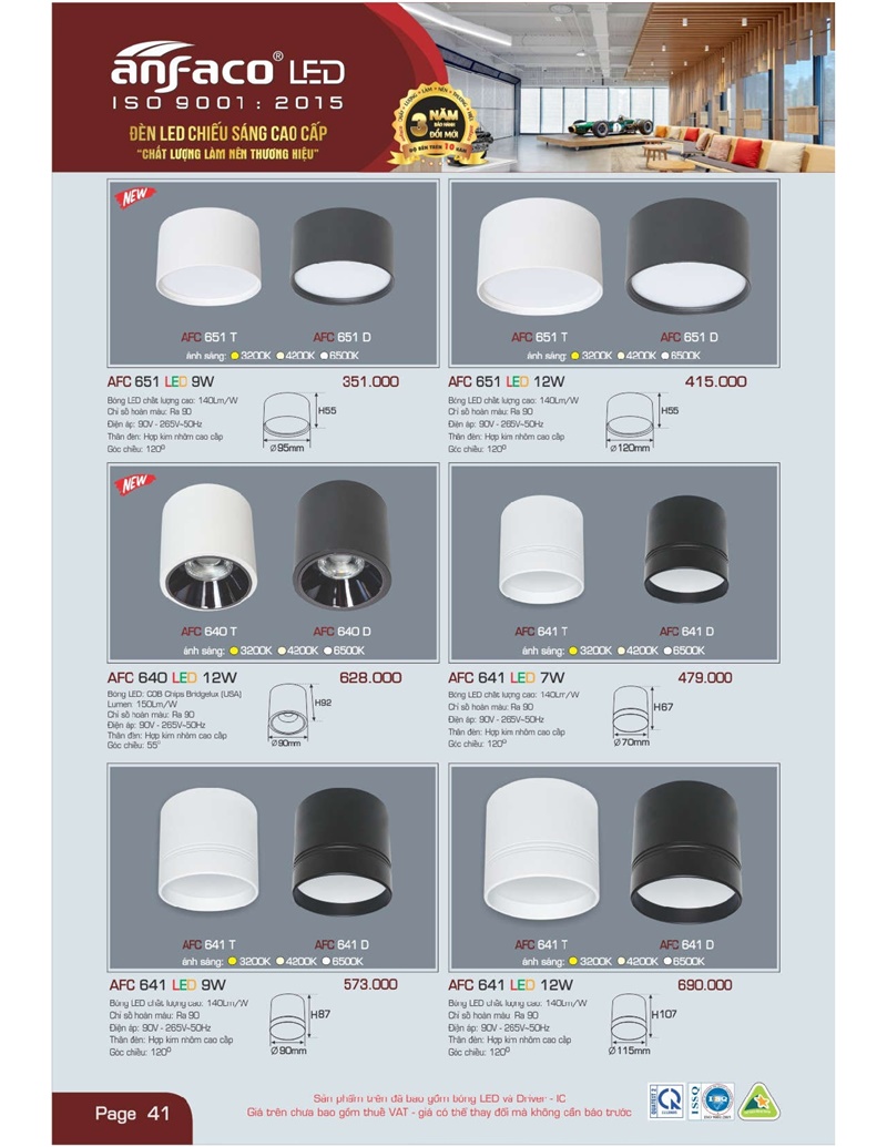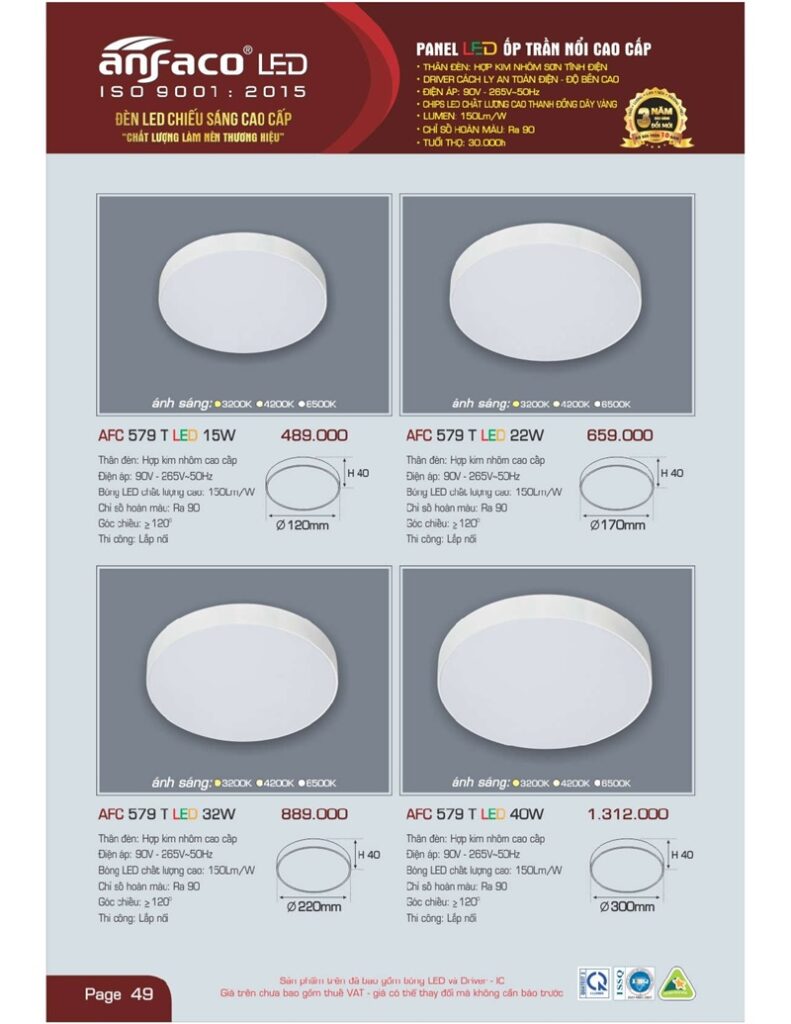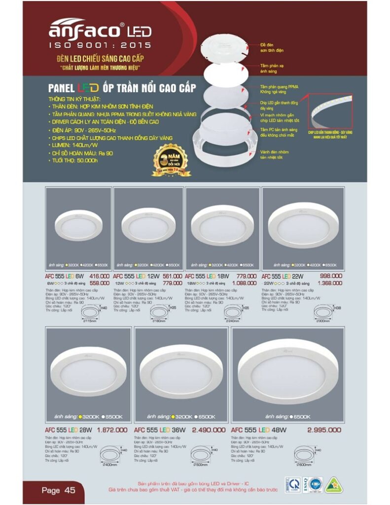Bảng giá đèn led Anfaco hình ảnh và thông số kỹ thuật: