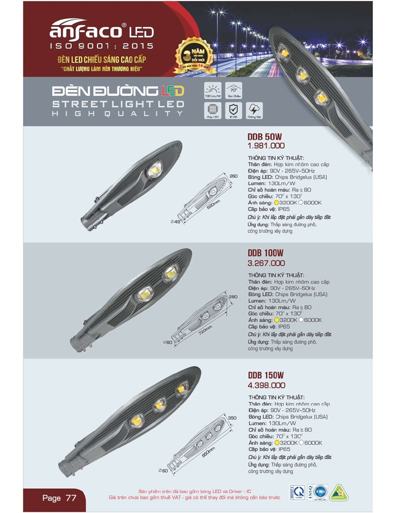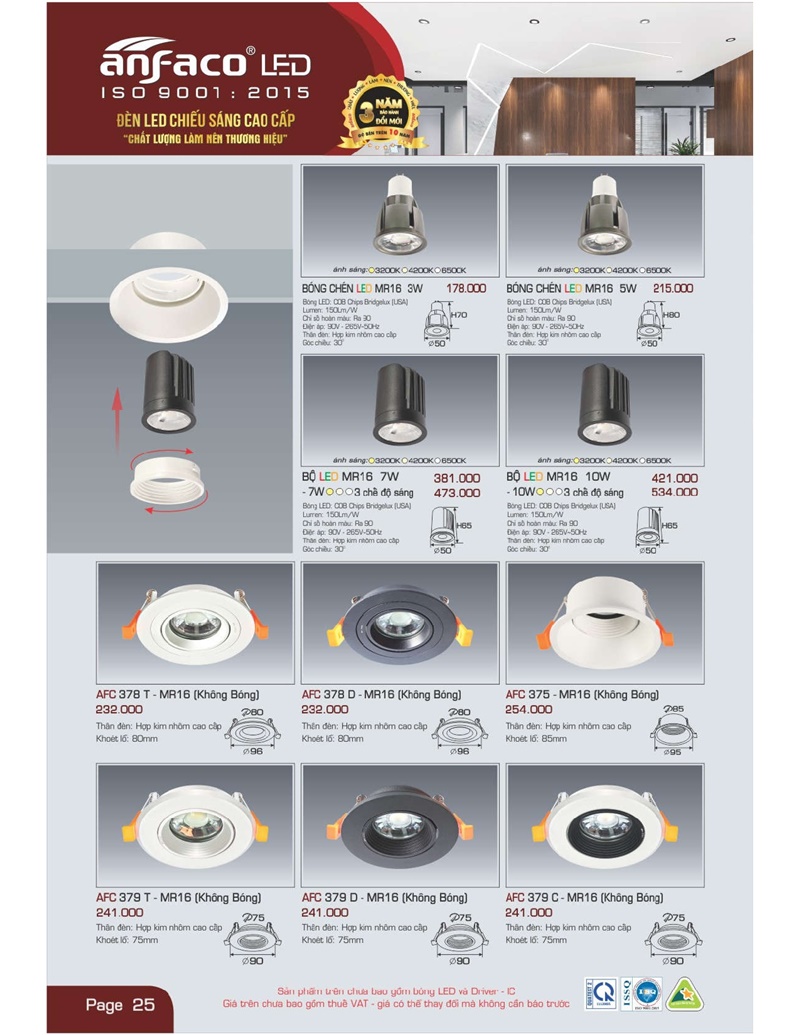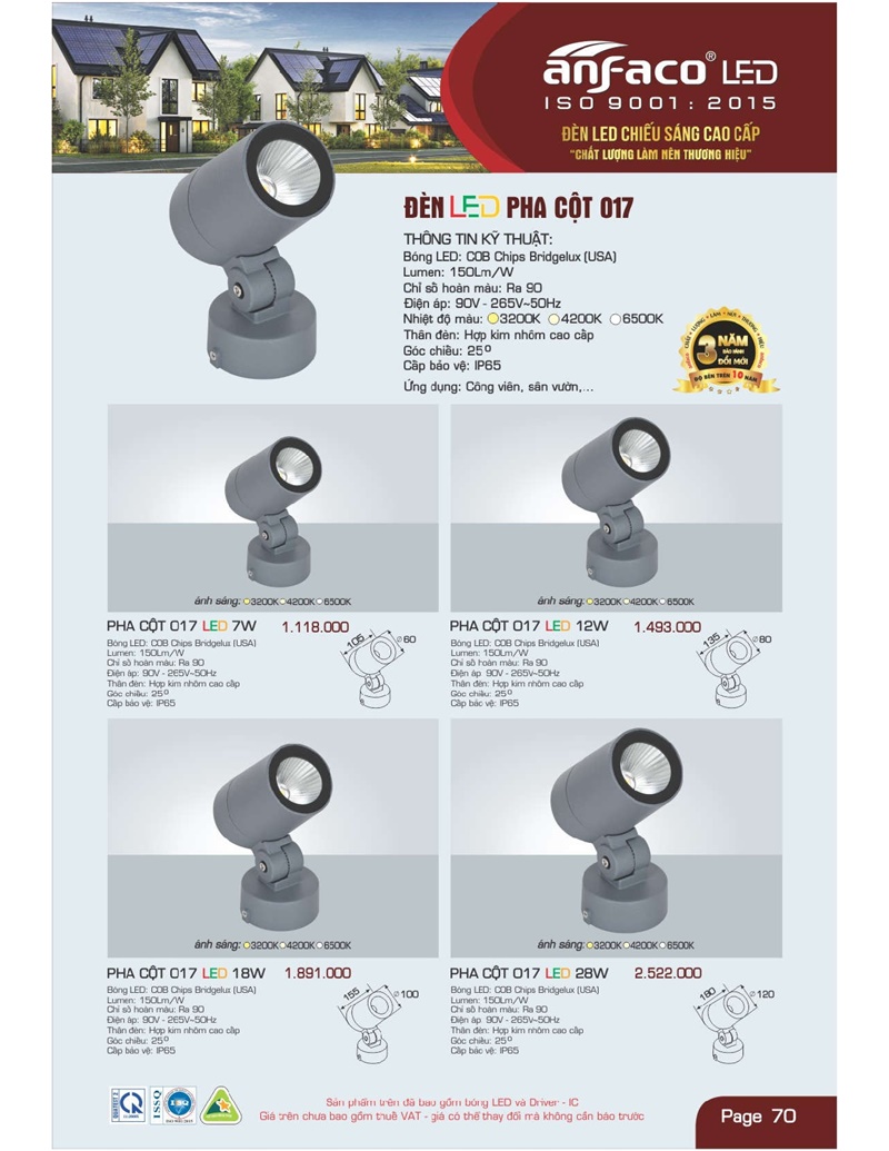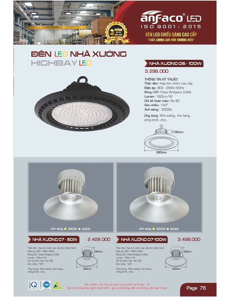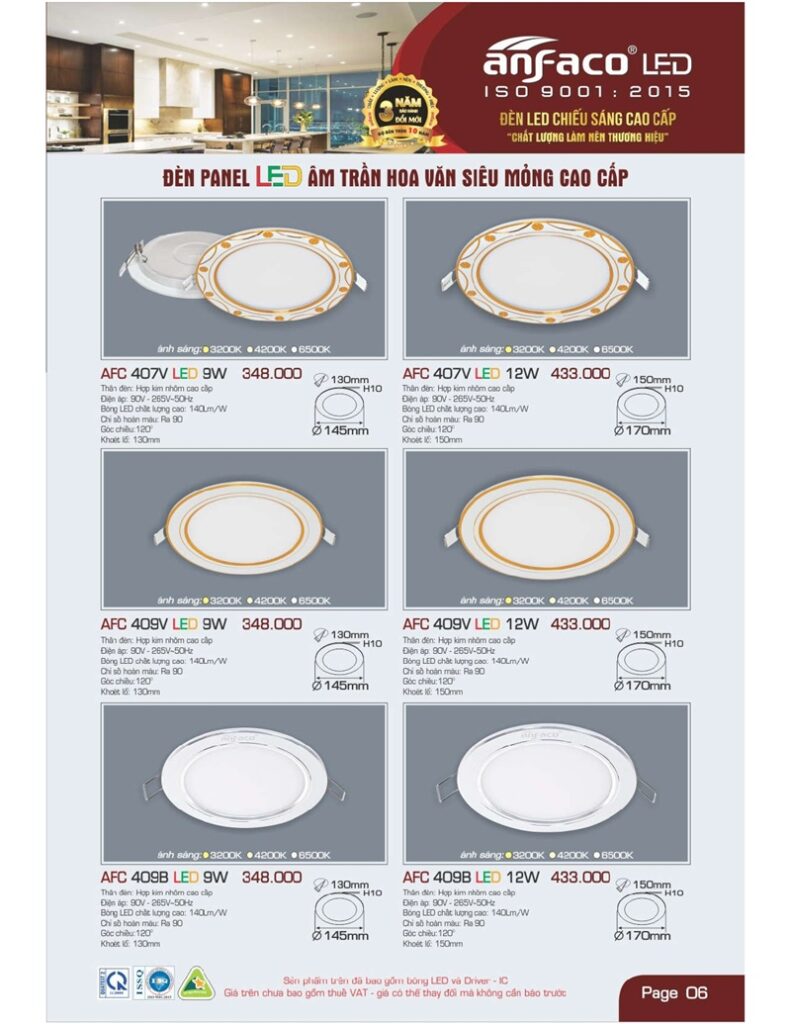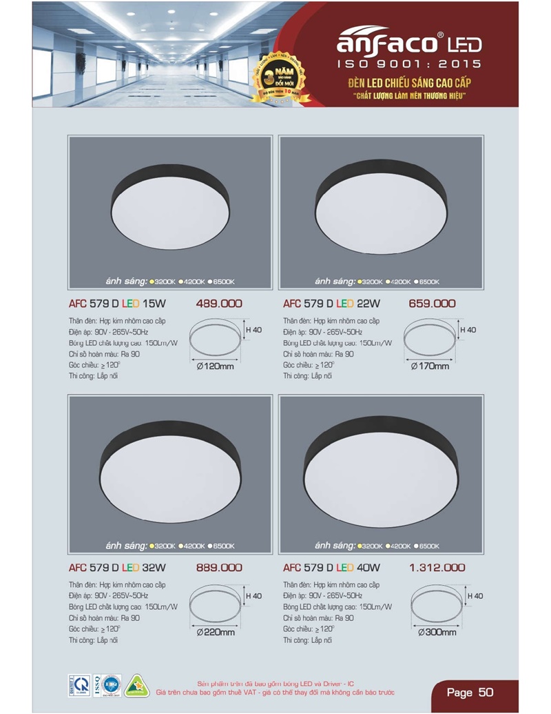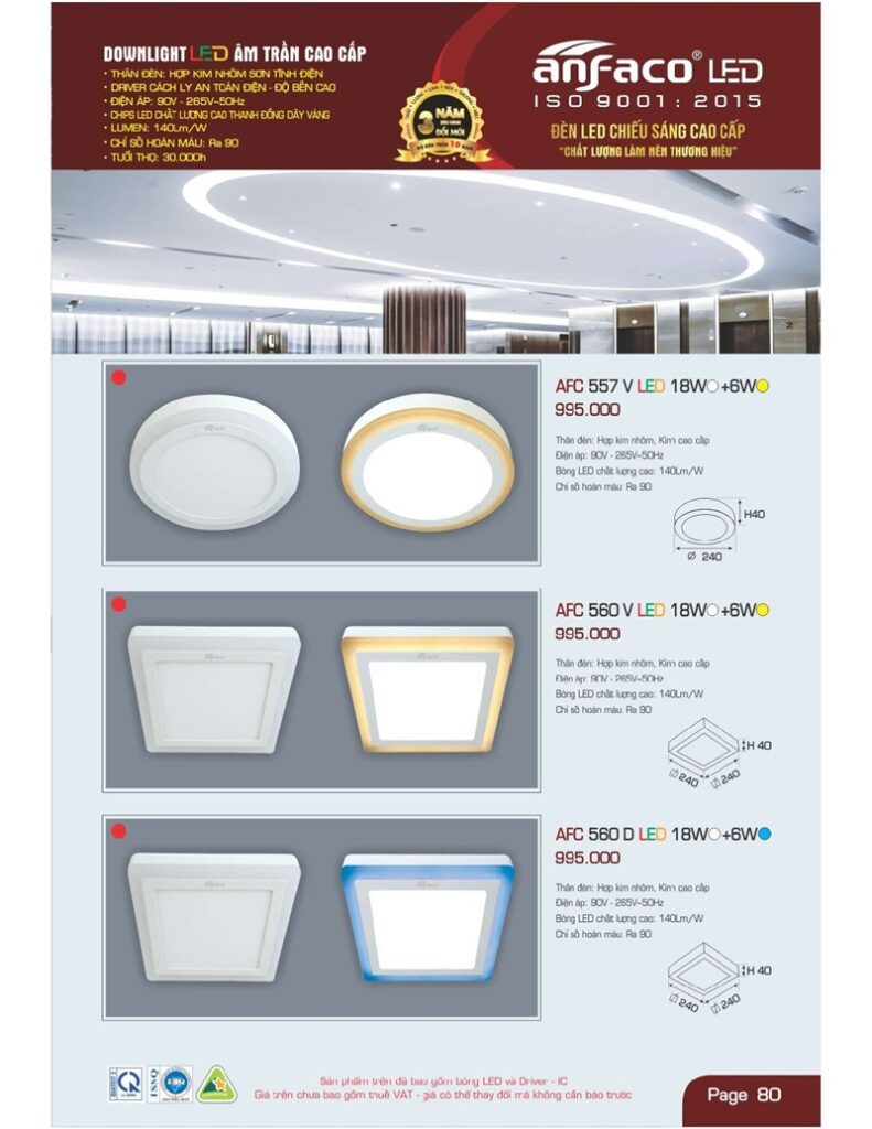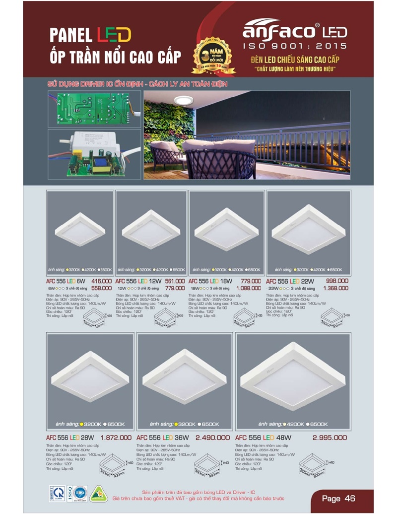 Bảng giá đèn led Anfaco hình ảnh và thông số kỹ thuật: