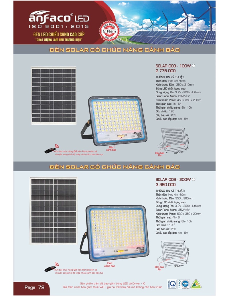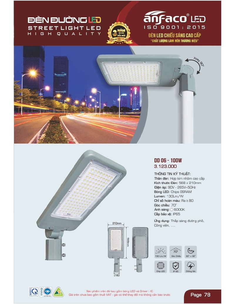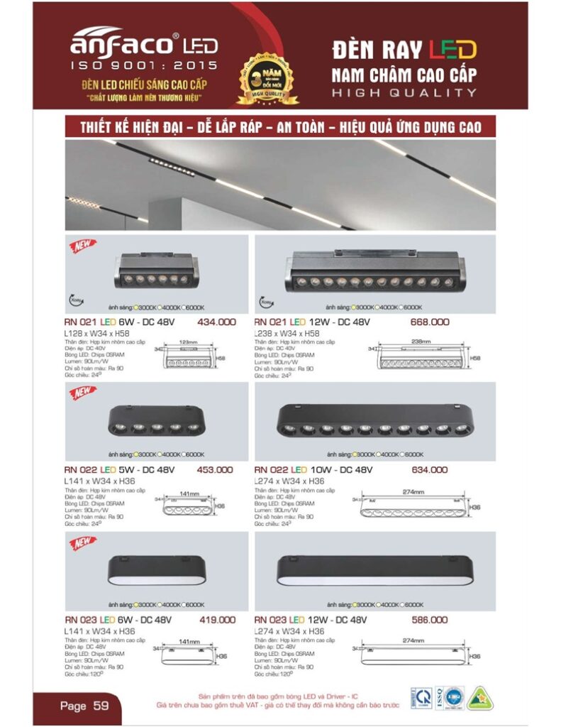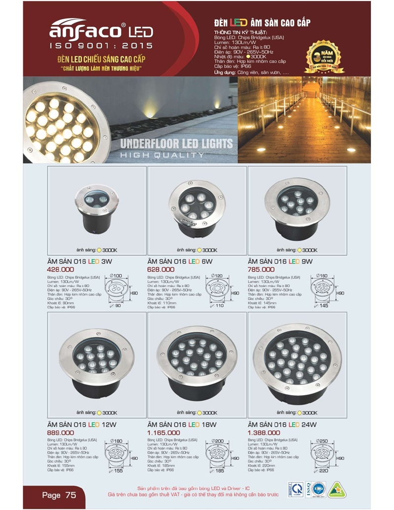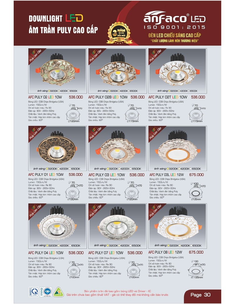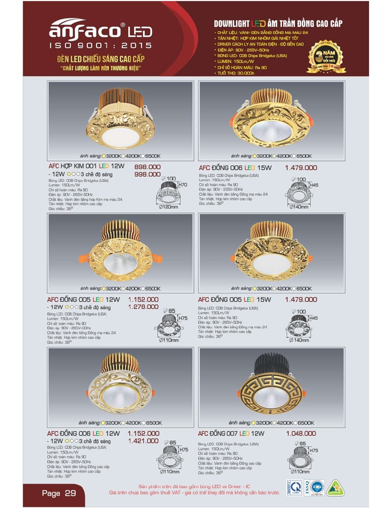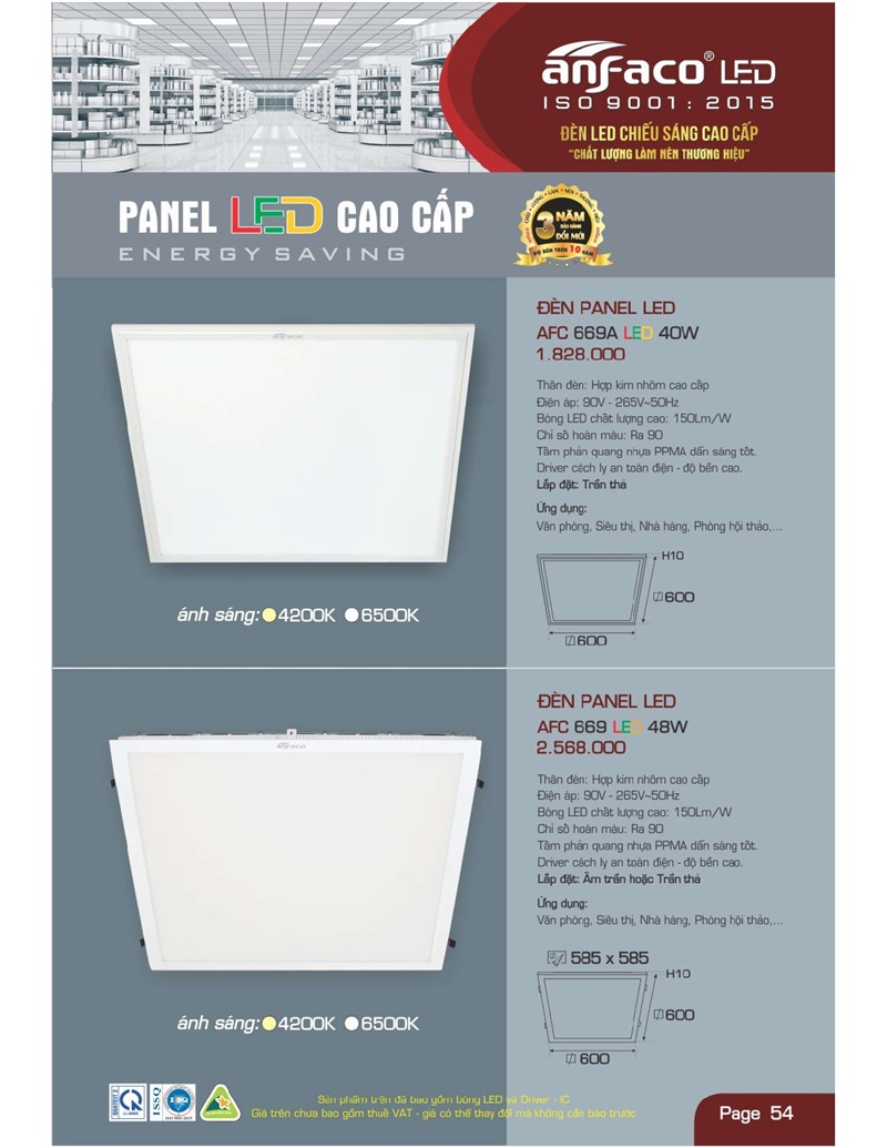 Bảng giá đèn led Anfaco hình ảnh và thông số kỹ thuật: