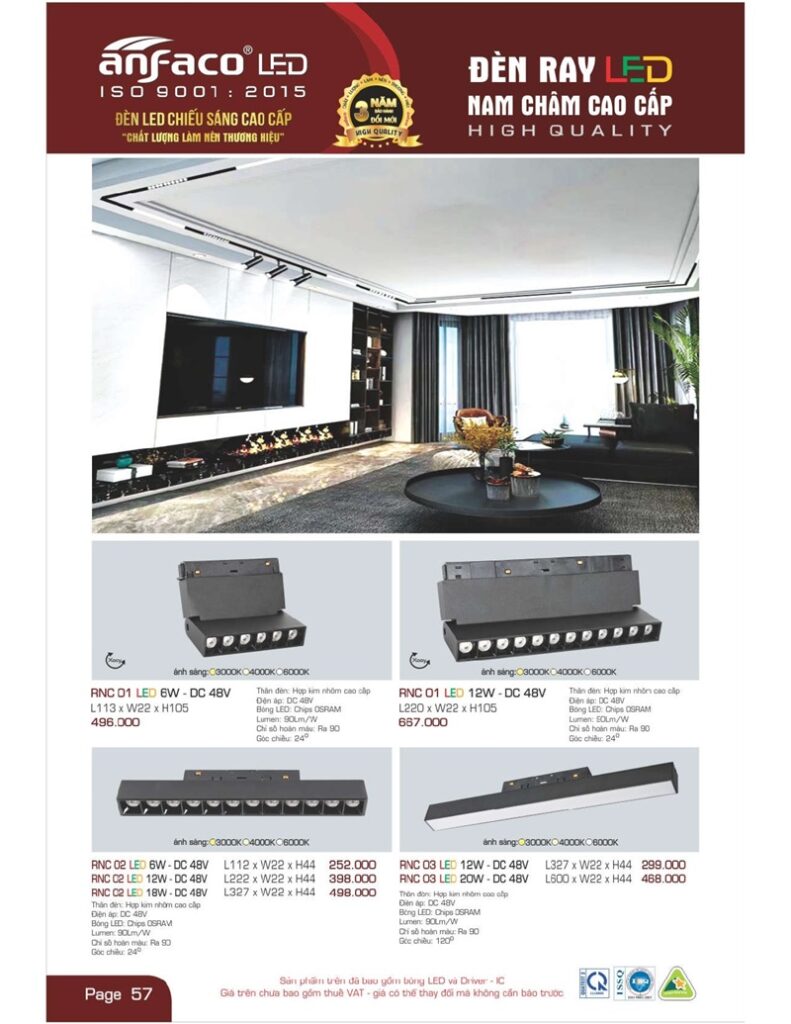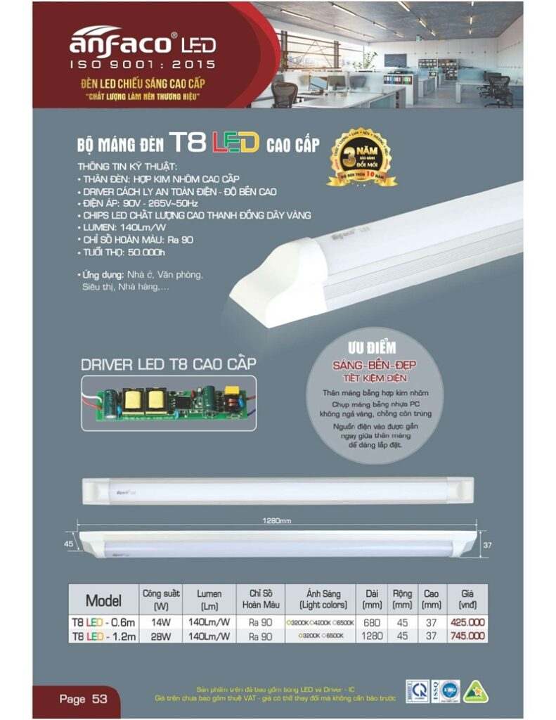 – Bảng giá đèn led Anfaco