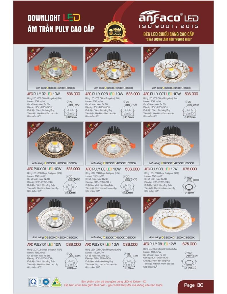 - Đa dạng sản phẩm: Anfaco cung cấp một loạt các sản phẩm đèn chất lượng cao từ đèn LED, đèn trang trí đến đèn ngoại thất.