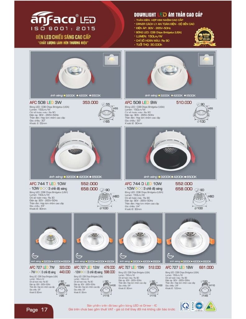 Bảng giá đèn led Anfaco mới nhất áp dụng tháng 2 2024 mới nhất TẢI FILE TẠI ĐÂY