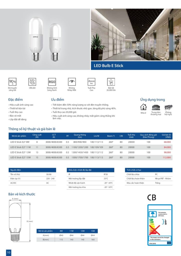 – Bảng giá đèn led Opple