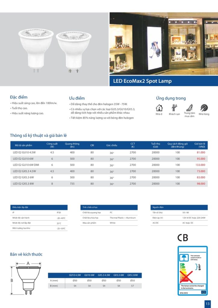 – Bảng giá đèn led MPE
