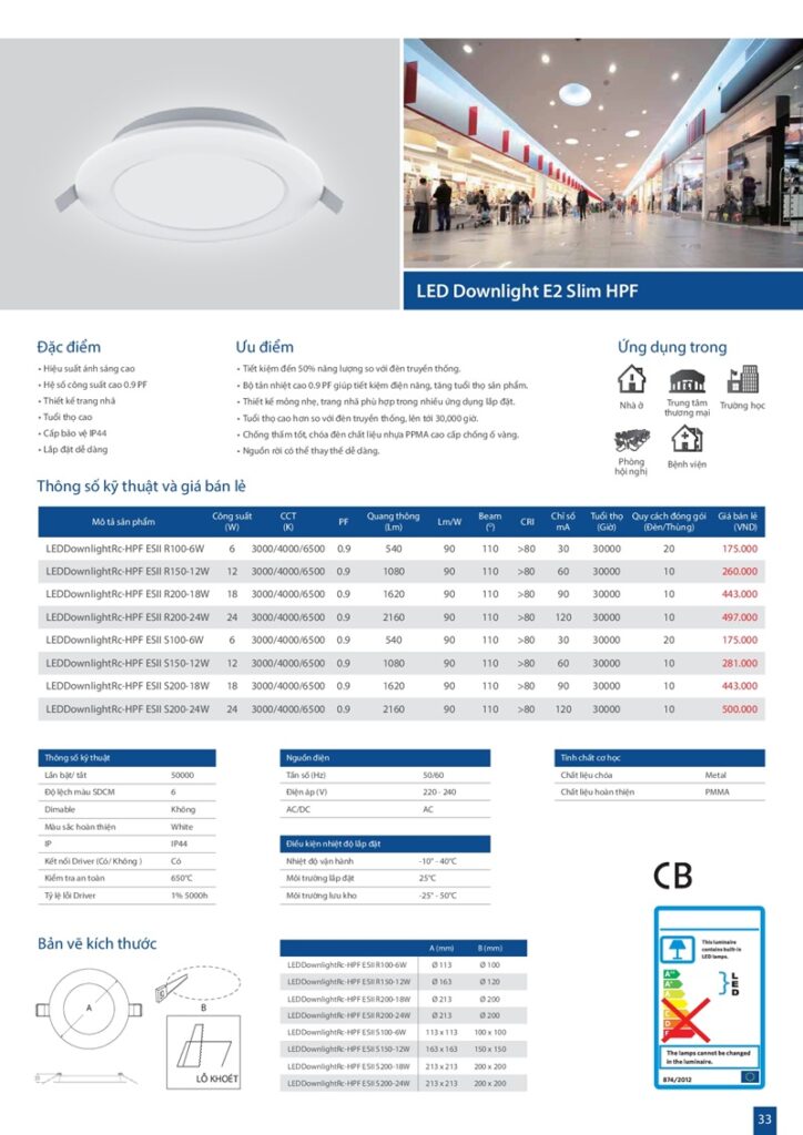 – Bảng giá đèn led Paragon
