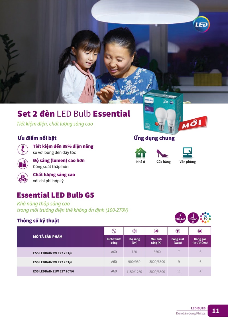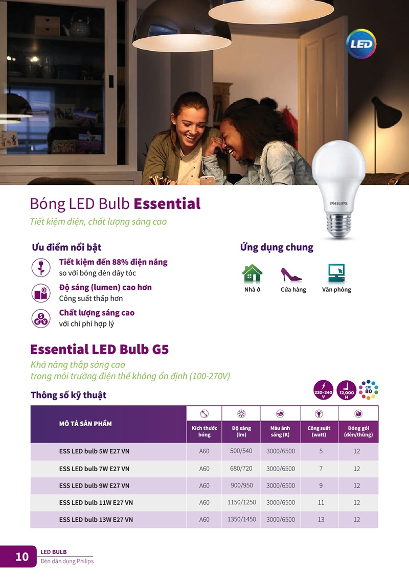 - Tuổi thọ cao: Đèn LED Philips thường có tuổi thọ dài, giảm chi phí thay thế và bảo dưỡng.