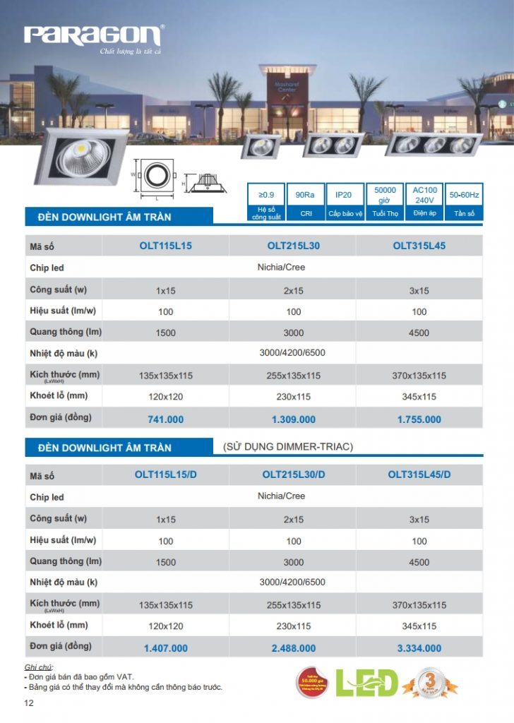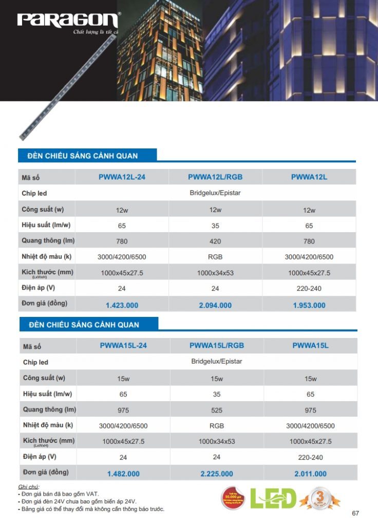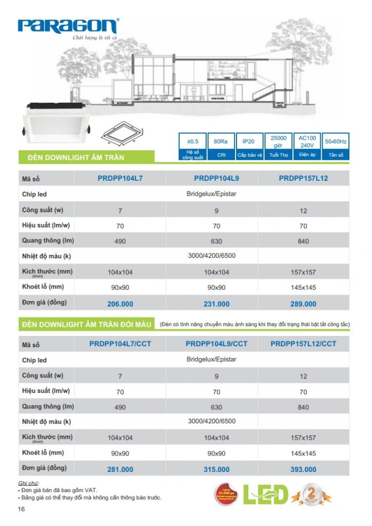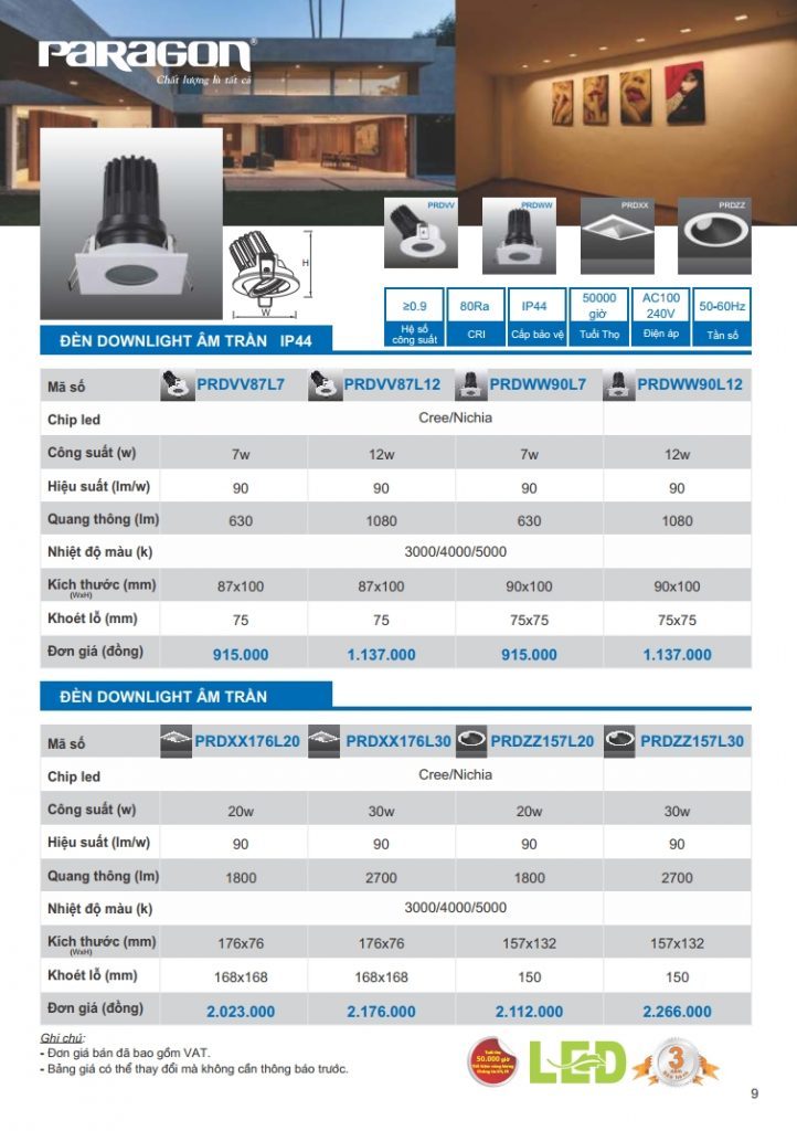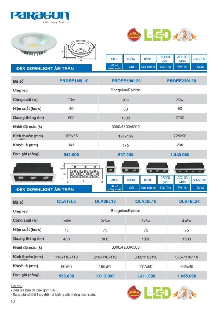 Bảng giá đèn led Paragon bằng hình ảnh full