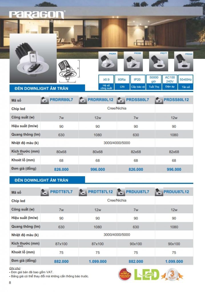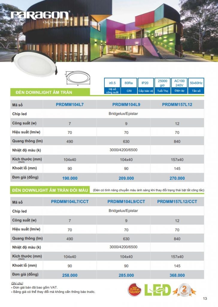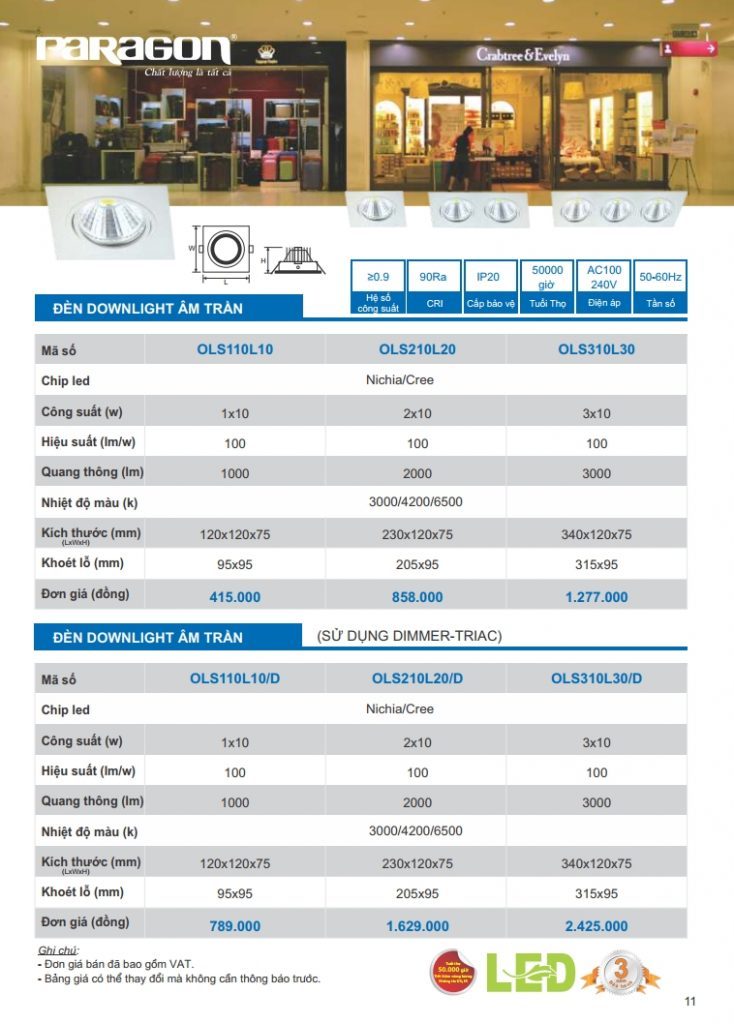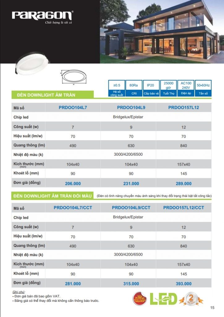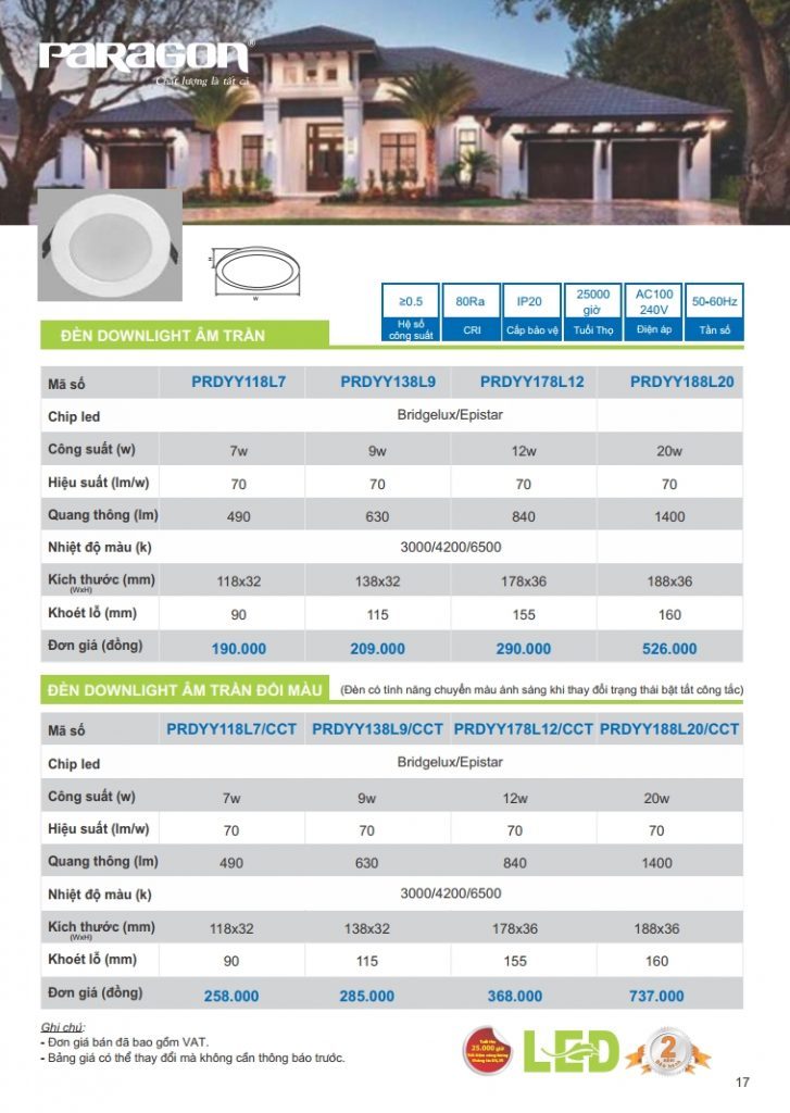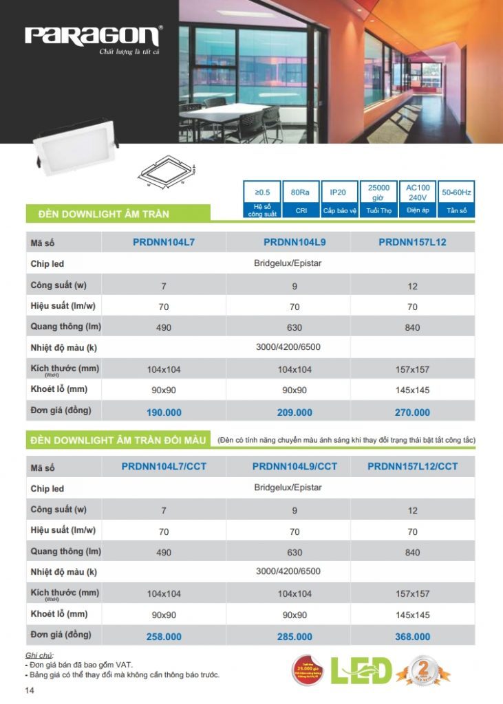 Bảng giá đèn led Paragon bằng hình ảnh full