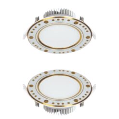 - Thiết kế nghệ thuật mạ vàng: Điểm nhấn viền mạ vàng mang lại sự sang trọng và đẳng cấp. Khi lắp lên trần thạch cao, đèn trở thành một món đồ trang trí tinh tế nâng tầm gu thẩm mỹ của gia chủ.