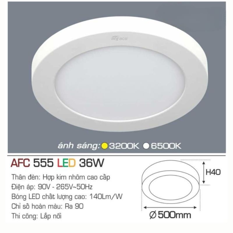 Dưới đây là các thông số kỹ thuật ấn tượng giúp Đèn LED AFC 555 36W khẳng định vị thế trên thị trường: