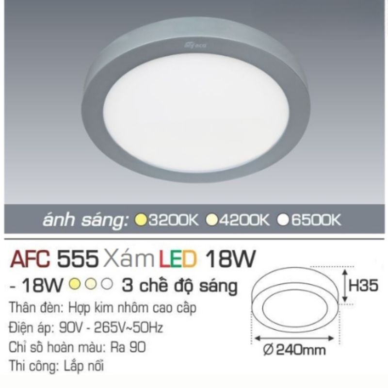 LED âm trần AFC 555 Xám 18W chính là câu trả lời hoàn hảo. Với