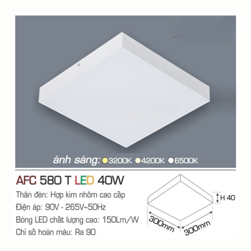 Dưới đây là các thông số kỹ thuật cốt lõi của dòng đèn AFC 580 T LED 40W, giúp quý khách hàng dễ dàng đối chiếu với nhu cầu thực tế: