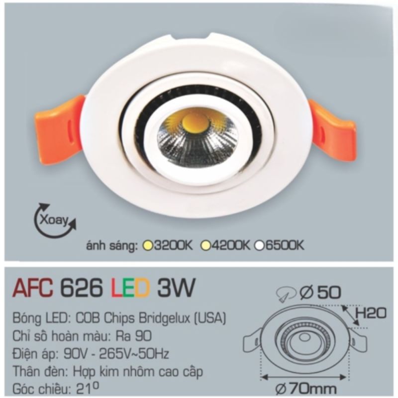 Tổng quan về đèn âm trần downlight AFC 626 LED 3W Anfaco 🔍