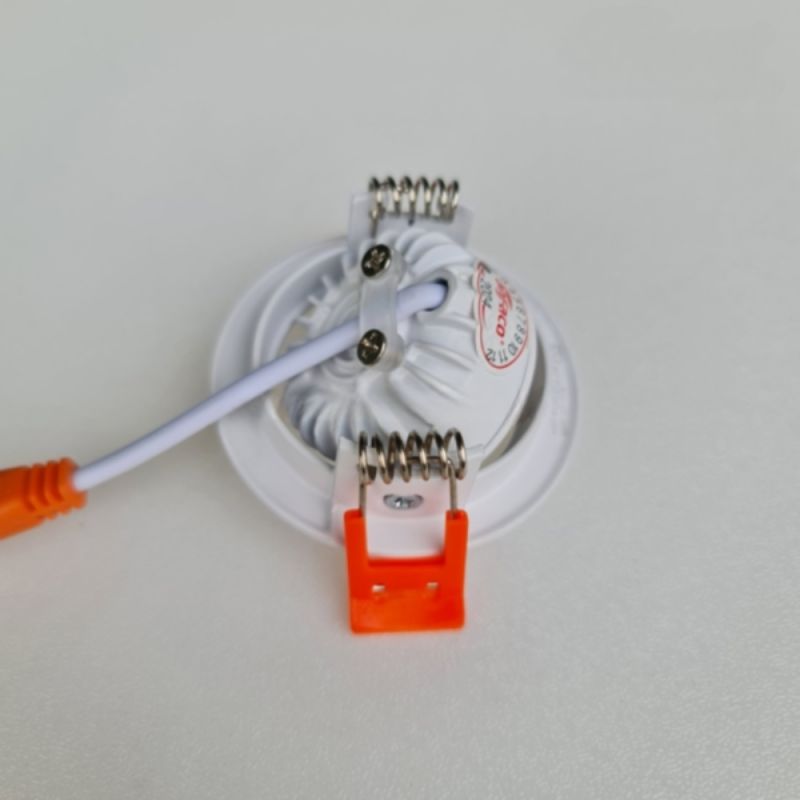 - Bước 3: Kết nối thân đèn vào Driver, bóp nhẹ hai tai lò xo kẹp và đưa đèn vào lỗ khoét.