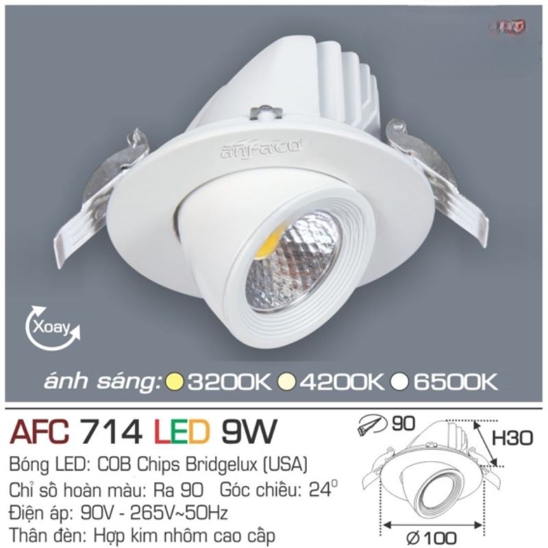 Dưới đây là các thông số kỹ thuật cốt lõi giúp AFC 714 LED 9W trở thành sự lựa chọn hàng đầu trong phân khúc đèn âm trần cao cấp: