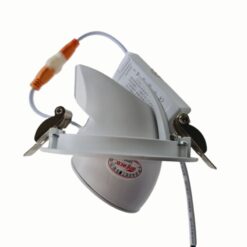 - Bước 3: Đẩy tai lò xo của đèn lên phía trên, đưa đèn vào lỗ khoét và thả tay để lò xo tự giữ chặt đèn cố định vào trần, sau đó bật nguồn kiểm tra.