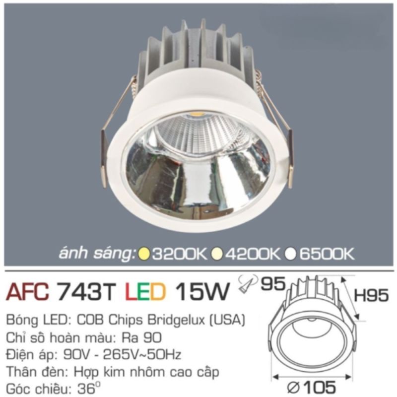 Đèn chiếu điểm âm trần AFC 743 T LED 15W của Anfaco chính là sự lựa chọn hoàn hảo, hội tụ công nghệ COB Bridgelux đỉnh cao và khả năng điều chỉnh hướng sáng thông minh.