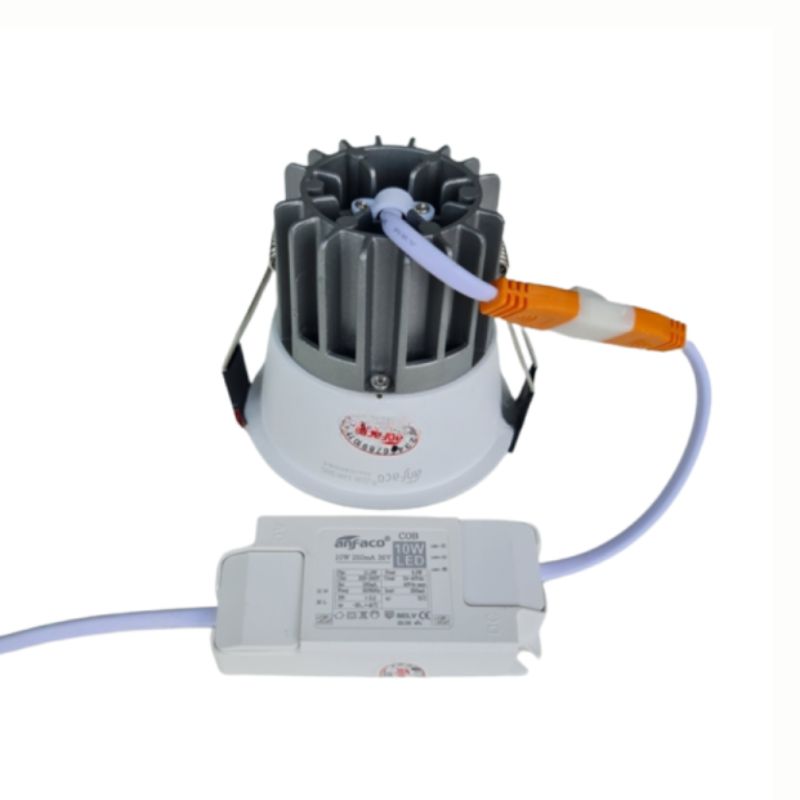 - Bước 3: Bóp nhẹ hai tai lò xo hướng lên trên, đưa đèn vào lỗ khoét và thả nhẹ để kẹp chặt vào trần. Điều chỉnh độ nghiêng mong muốn và kiểm tra.