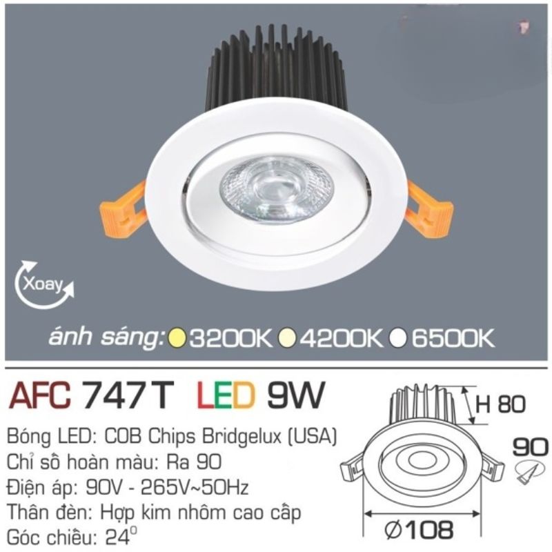 ĐÈN LED CHIẾU ĐIỂM ÂM TRẦN AFC 747 T LED 9W ANFACO – ÁNH SÁNG HỘI TỤ, XOAY GÓC LINH HOẠT