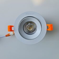 - Bước 3: Đẩy tai lò xo hướng lên trên, đưa đèn vào lỗ khoét và thả nhẹ để đèn bám chắc vào mặt trần. Điều chỉnh góc xoay theo ý muốn.