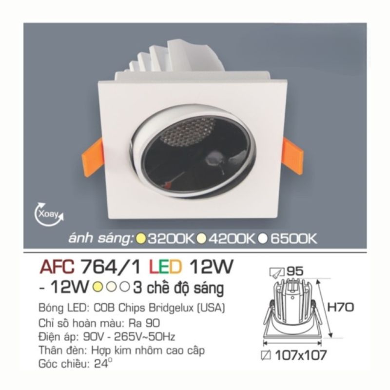 | Tiêu chí | Anfaco AFC 764/1 LED 12W | Đèn LED âm trần Philips | Đèn LED âm trần Rạng Đông |