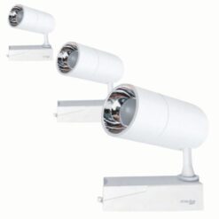 Sơ đồ kỹ thuật của đèn mô tả chi tiết chiều dài thân đèn, đường kính chóa và khớp xoay linh hoạt 360 độ giúp khách hàng dễ dàng tính toán khoảng cách lắp đặt phù hợp trên thanh ray.