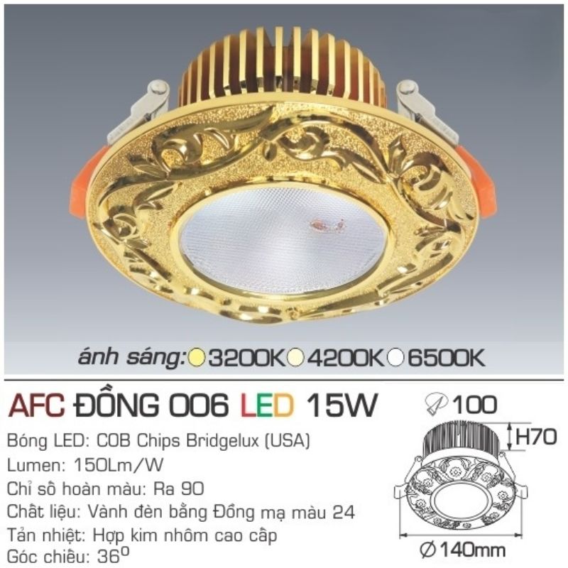 Đèn Downlight Âm Trần AFC ĐỒNG 006 LED 15W – Đẳng Cấp Sang Trọng Cho Không Gian Nội Thất