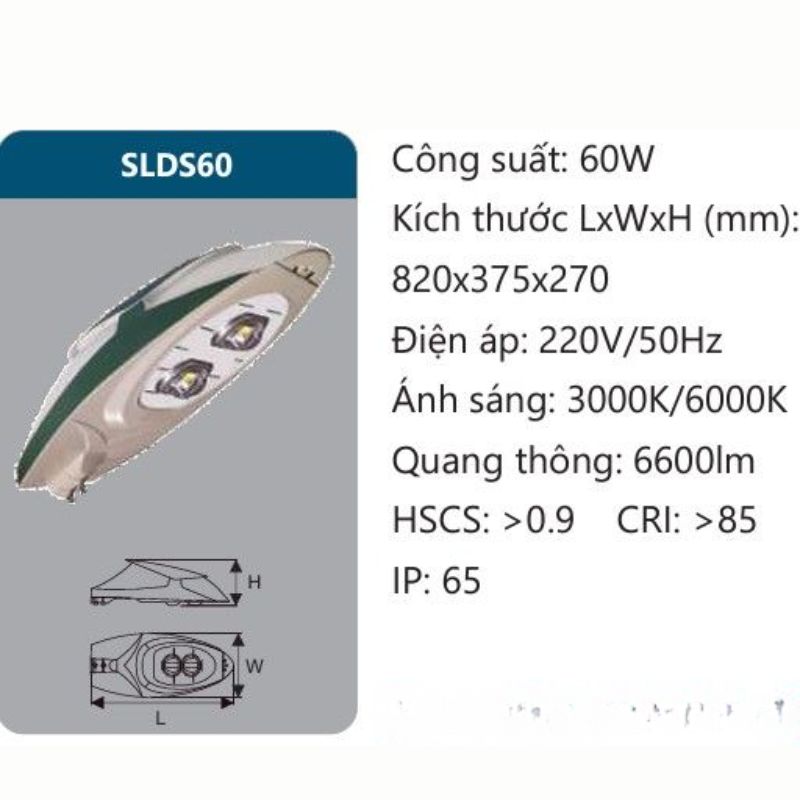 tạo và kích thước chi tiết của đèn LED SLDS60,