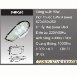 <h2>Thông tin kỹ thuật chi tiết của Đèn đường LED 90W SHDS90