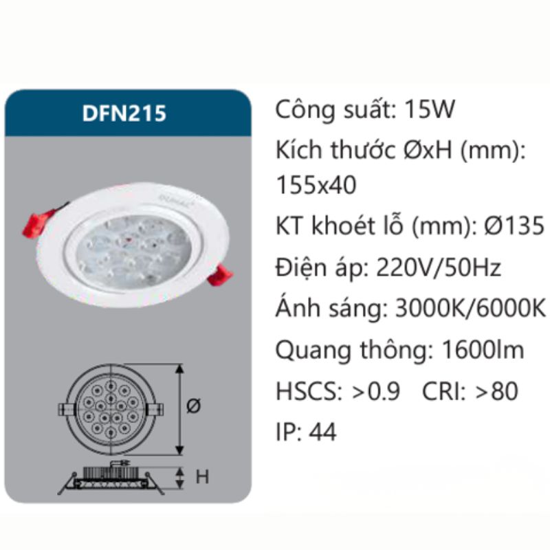 Đèn LED âm trần chiếu điểm 15W DFN215 Duhal ra