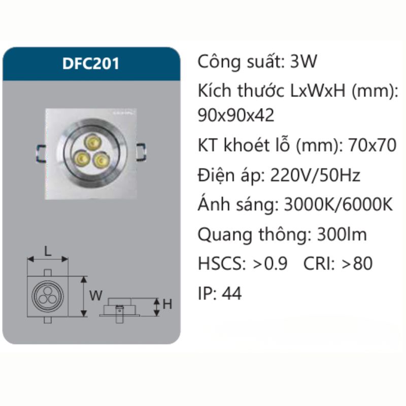 Thông số kỹ thuật chi tiết của Đèn LED DFC201 Duhal