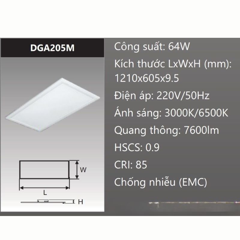 lực. Đèn LED Panel 64W DGA205 Duhal ra đời chính