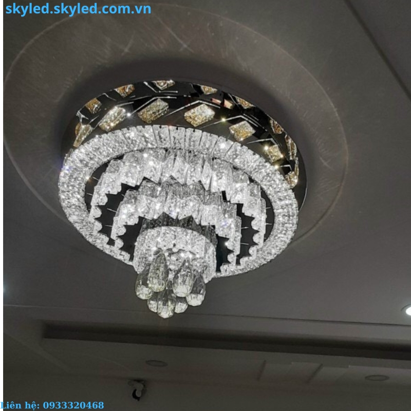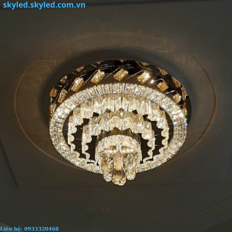 - Kiểu: Đèn ốp trần pha lê trang trí sảnh, phòng khách, phòng ăn