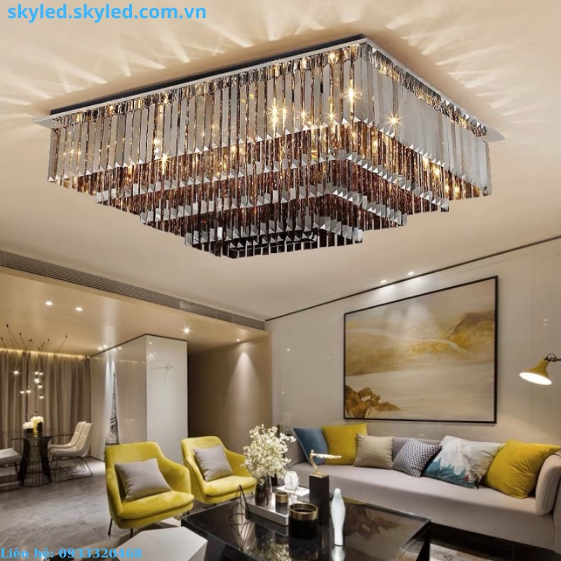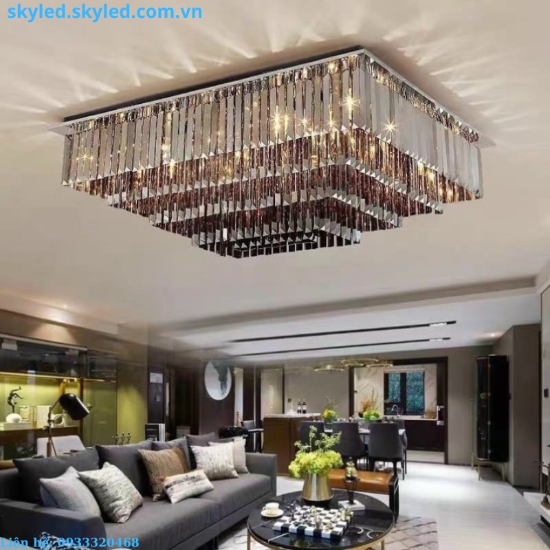 - Kiểu: Đèn ốp trần pha lê trang trí sảnh, phòng khách, phòng ăn