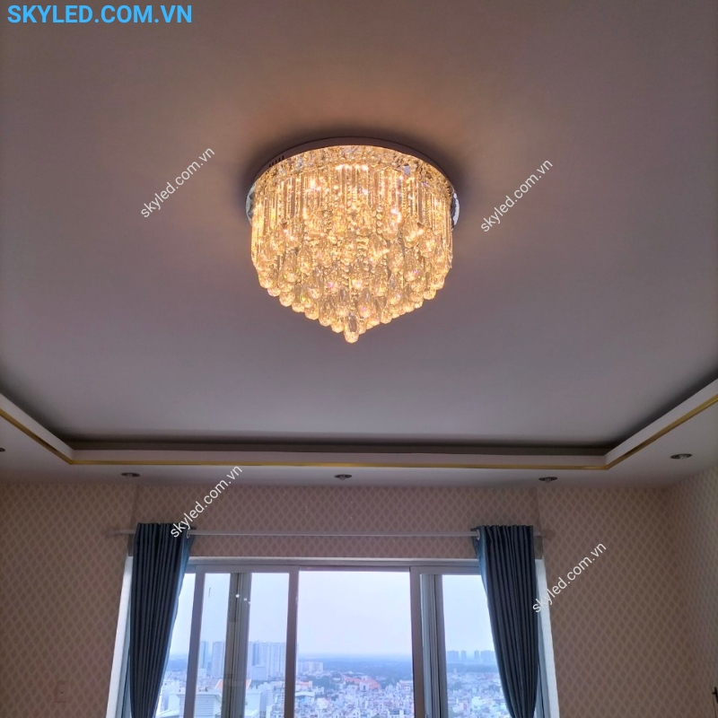 – **Kiểu:** Đèn ốp trần pha lê trang trí sảnh, phòng khách, phòng ăn
