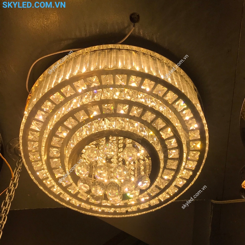 – Kiểu: Đèn ốp trần pha lê trang trí sảnh, phòng khách, phòng ăn
