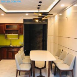 - Trong không gian nội thất gia đình: Đèn có thể treo trên bàn ăn, trong phòng khách hoặc không gian làm việc, tạo ra không gian sống hiện đại và ấm cúng.