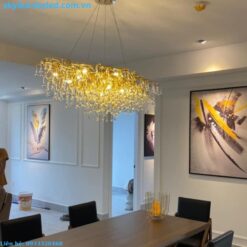 Phòng khách: Đèn thả pha lê TPL05 tạo điểm nhấn ấn tượng cho không gian phòng khách, làm cho không gian trở nên thanh lịch và quý phái.