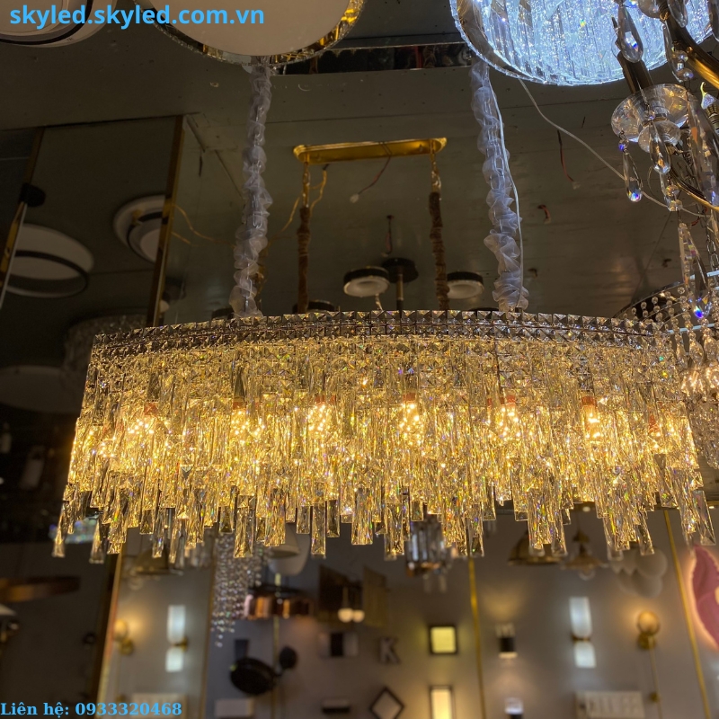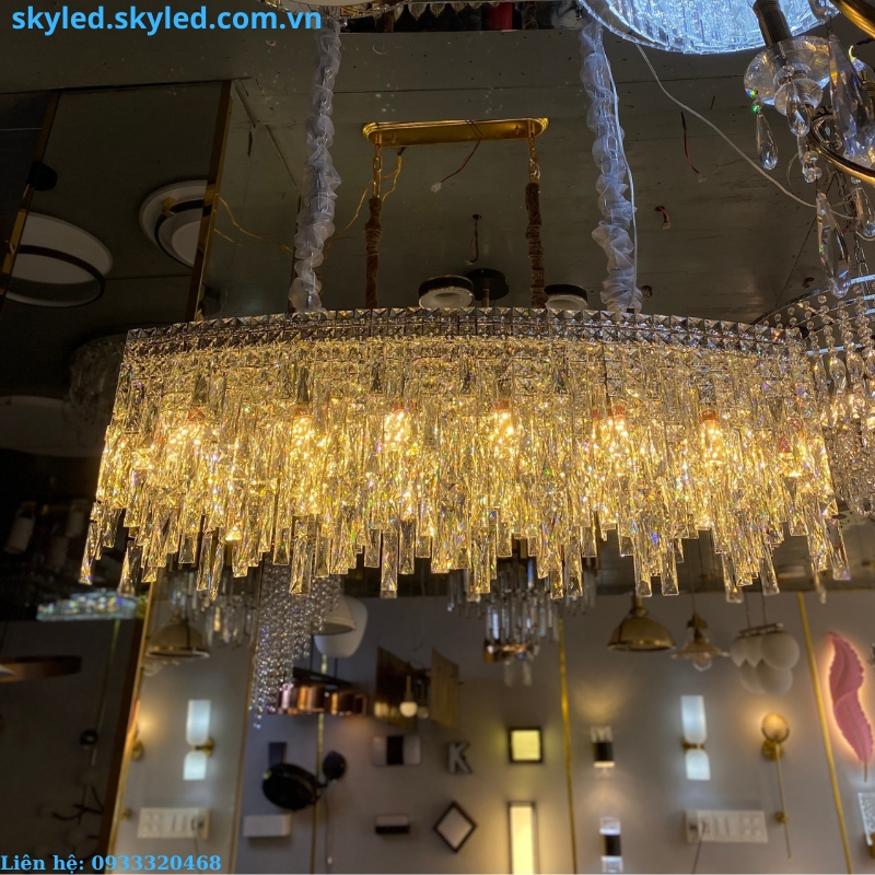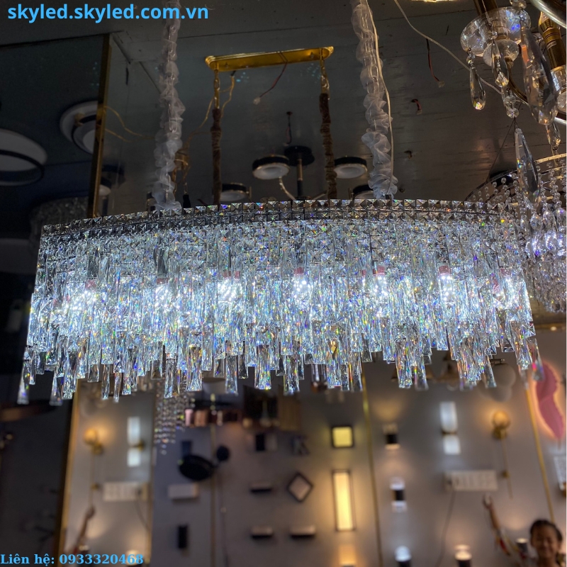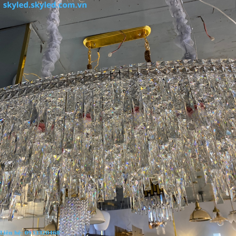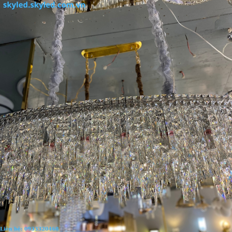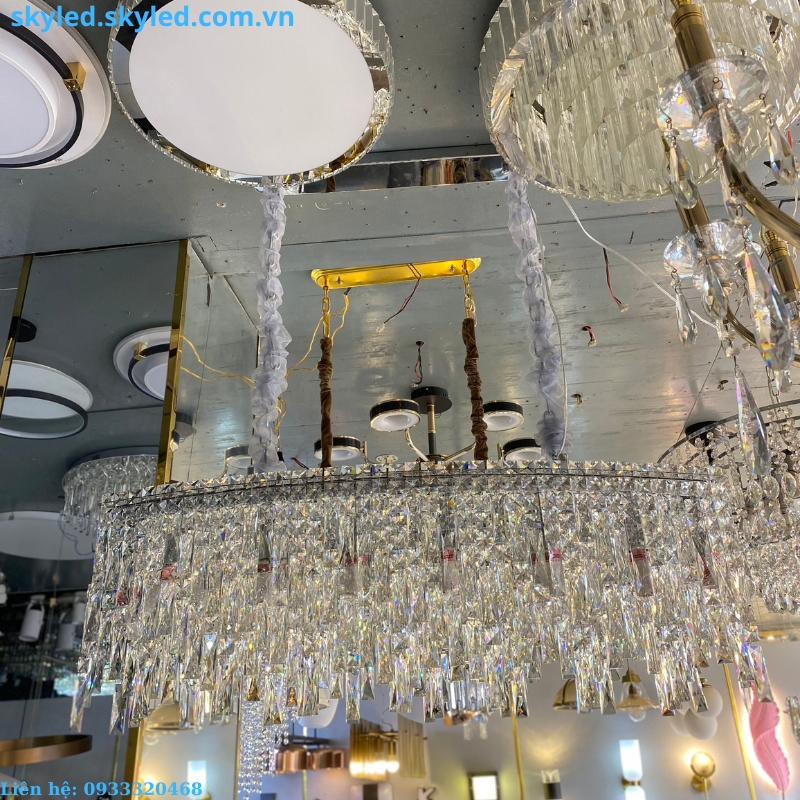 - Chất liệu pha lê K9 cao cấp, tạo nên sự lấp lánh và tinh tế cho không gian.
