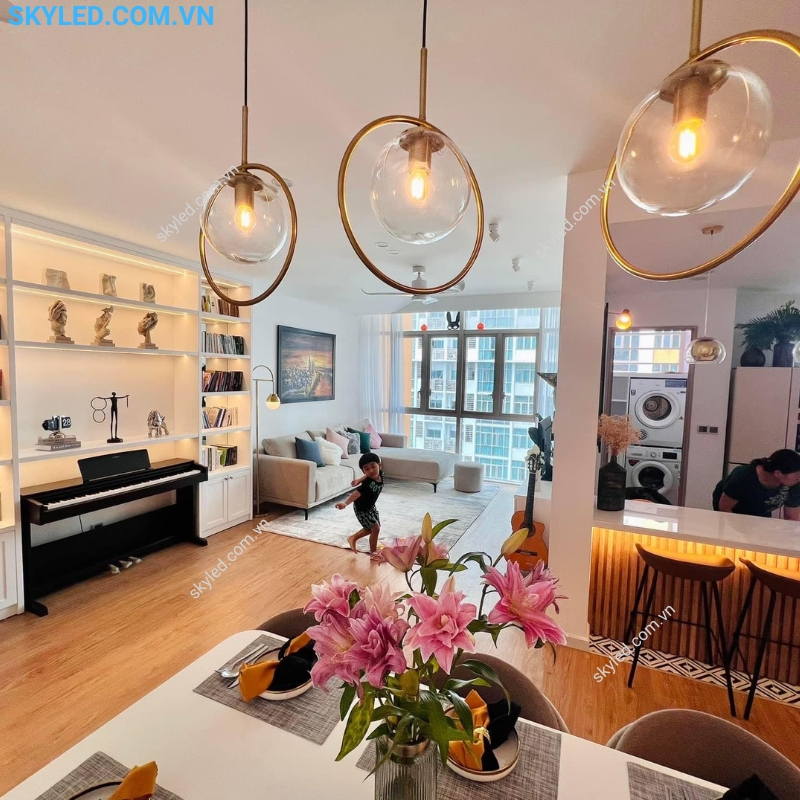 - Kiểu: Đèn thả thủy tinh phòng khách – Thả bàn ăn – Thả thông tầng