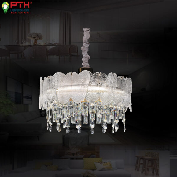 Mẫu đèn TH-8520 sở hữu thiết kế pha lê tinh xảo, tạo hiệu ứng ánh