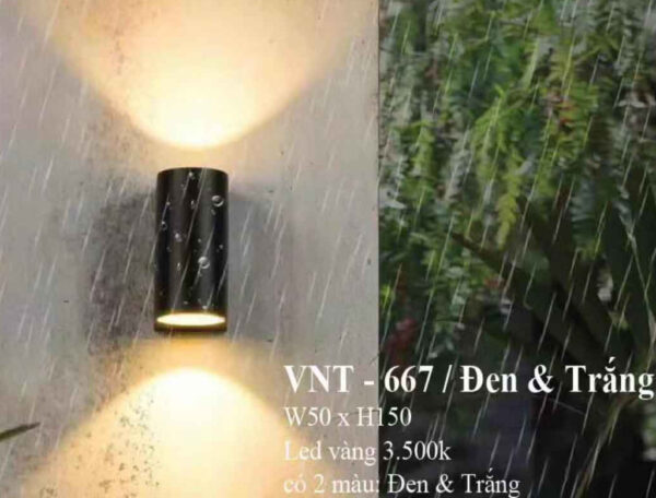 1. Đèn vách ngoài trời hình trụ VNT – 667/đen có chống nước