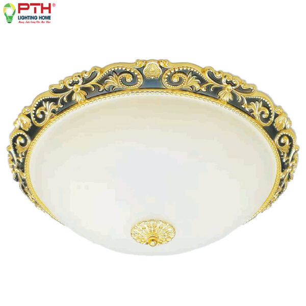 cách: Đèn ốp trần cổ điển với họa tiết hoa nổi màu vàng