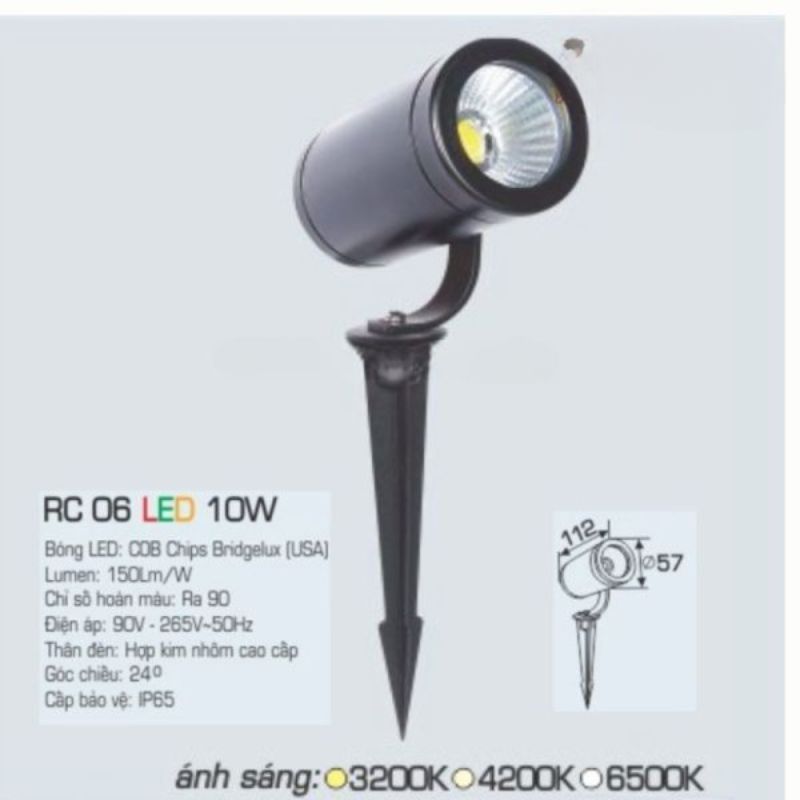 đồ mô tả cấu hình và kích thước chi tiết của đèn RC 06 10W, giúp bạn dễ dàng